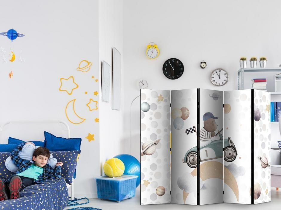 Paravent intérieur "Paravent - Galactic Races - Bear Participating in Car Races Among Planets - Clouds - and Stars in Pastel Hues"Les paravents décoratifs sont certainement une idée originale dans le domaine de la décoration...