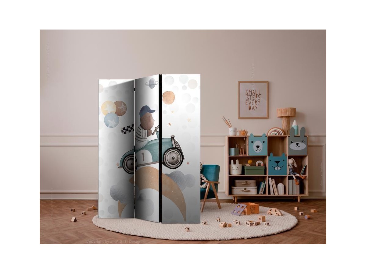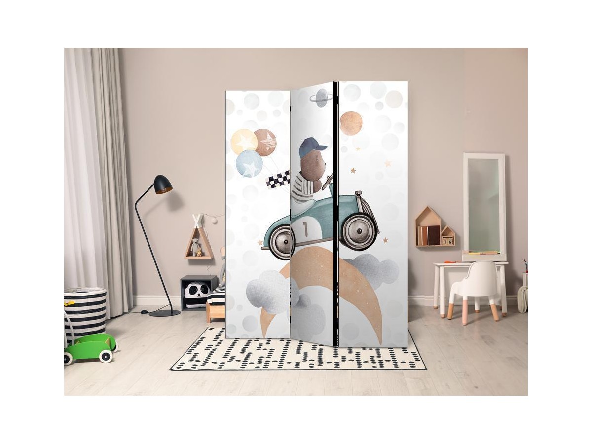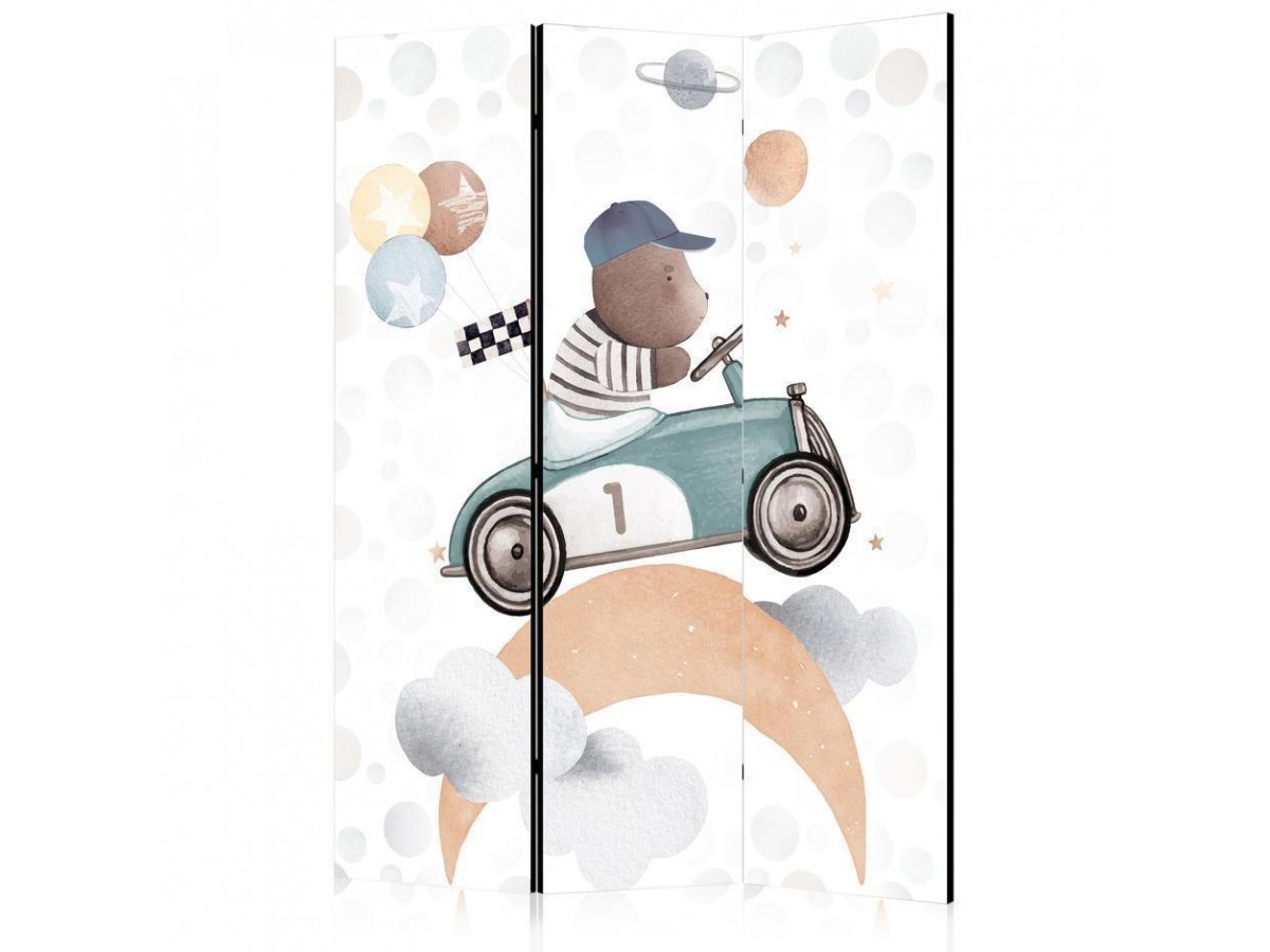 Paravent intérieur "Paravent - Galactic Races - Bear Participating in Car Races Among Planets - Clouds - and Stars in Pastel Hues"Les paravents décoratifs sont certainement une idée originale dans le domaine de la décoration...