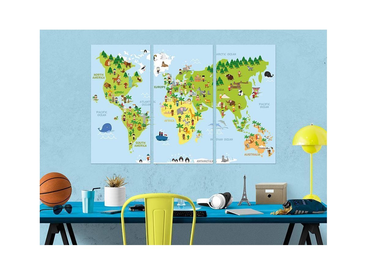 Le tableau en liège "Tableau en liège - Children's World" est un produit destiné aux personnes recherchant des décorations murales originales. Le matériau écologique et son motif intéressant font en sorte qu’un simple tableau en liège devient un accessoire de style, que vous pouvez utiliser de différentes manières. Vous pouvez y planter des punaises, indiquer les endroits visités sur une carte ou encore y placer des notes. Le tableau en liège "Tableau en liège - Children's World" est plus léger que les décorations murales traditionnelles. Grâce à cela les tableaux décoratifs en liège peuvent être suspendus sur tous les endroits souhaités dans votre logement ou bureau. La toile imprimée est placée sur la plaque en liège, grâce à quoi les couleurs d’impression sont bien définies et les détails — même les plus petits — sont restitués. Vous pouvez créer un motif personnalisé sur votre mur en y plantant des punaises ou notes!