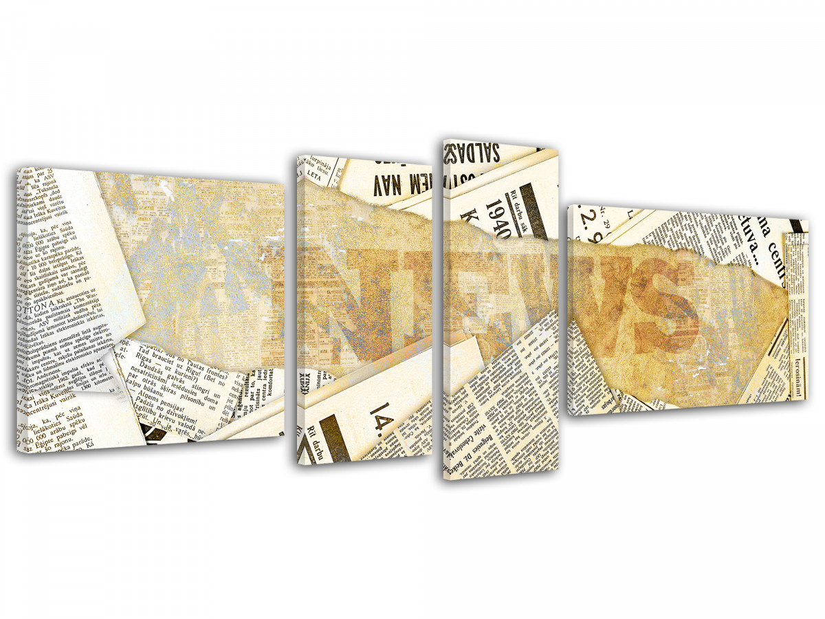 Idéal comme tableau original pour salon, ce tableau déco journaux vintage apportera à votre décoration d'intérieur un esprit d'époque chaleureux. Grand tableau sur toile imprimée en format quadriptyque, ce cadre mural vintage sera la touche d'originalité qu'il manquait à votre intérieur. Ce tableau fait partie de notre gamme de tableaux déco vintage à prix très intéressants. Faites-vous plaisir en redonnant un nouveau souffle à votre décoration !