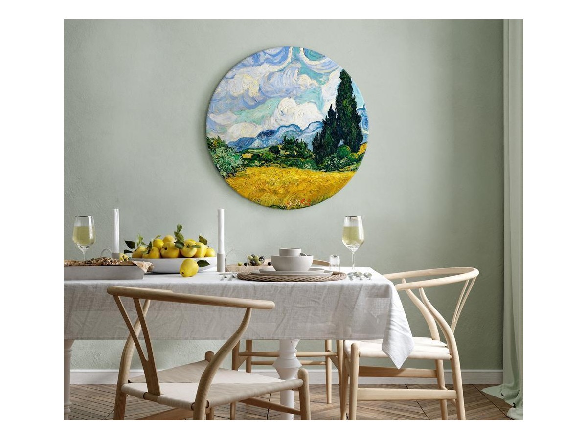 Le tableau sur toile rond "Tableau rond - Vincent Van Gogh – Wheat Field with Cypresses" est une décoration moderne qui s'intègre parfaitement dans les dernières tendances en matière de design d'intérieur, enrichissant à la fois les pièces meublées de façon traditionnelle et les maisons et les bureaux modernes. La métamorphose est à portée de main ! Que nous souhaitions changer l'intérieur de notre appartement - un salon, une chambre, un bureau à domicile ou une chambre d'adolescent, ou que nous souhaitions décorer un bureau, une salle d'attente, un café, un salon de beauté ou tout autre espace dans un lieu public, le tableau rond apportera une nouvelle qualité à l'intérieur et brisera sa monotonie. Les tableaux sur toile ronds de notre offre correspondent à différents agencements et styles de pièces, parmi lesquelles il y a des propositions adaptées aux intérieurs glamour, bohème, vintage, industriels et bien d'autres. Si vous recherchez une décoration traditionnelle avec une touche moderne, un tableau en forme de cercle est une proposition pour votre intérieur !