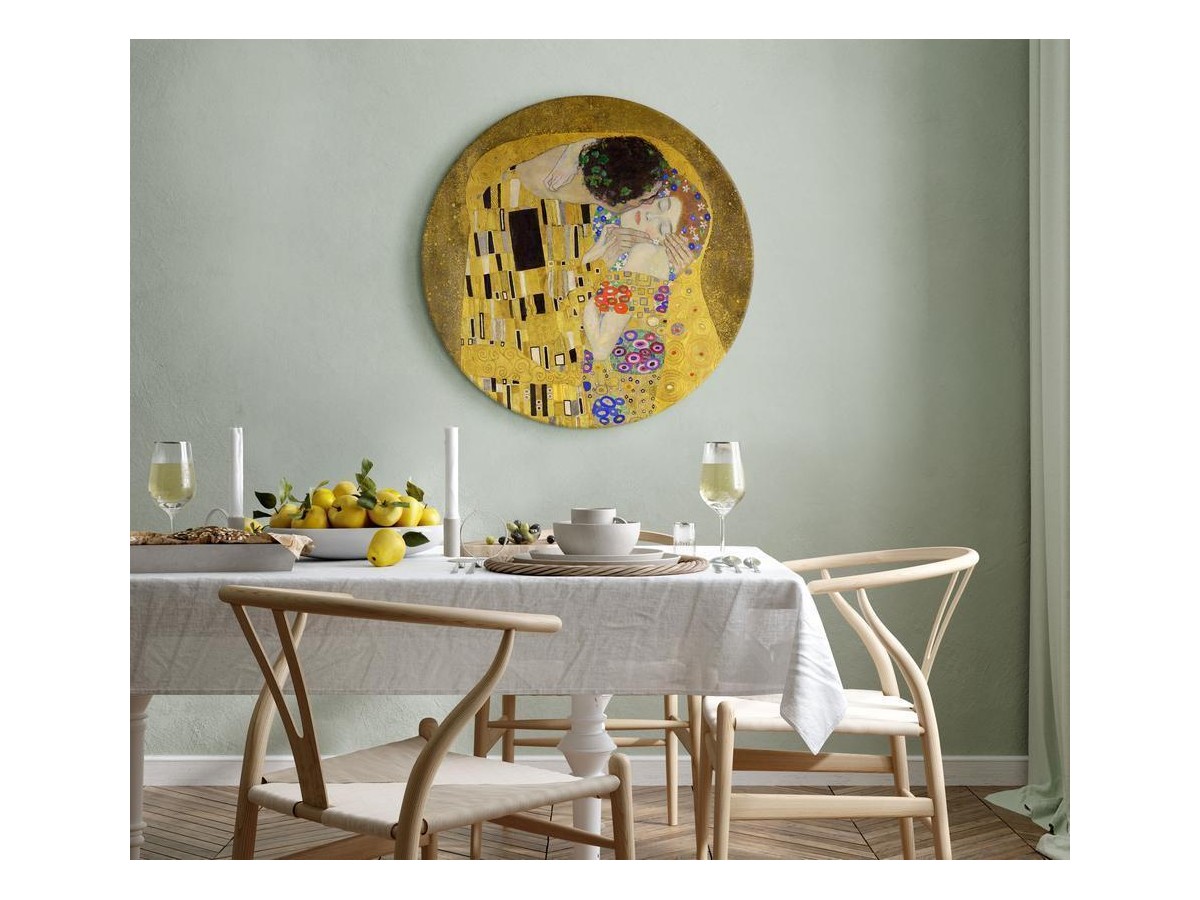 Si vous recherchez un compromis entre le support traditionnel de la toile italienne et une forme hors du commun et unique, les peintures murales rondes sont le choix parfait ! La toile italienne de la plus haute qualité garantit une excellente impression haute définition et une reproduction fidèle des détails. La protection UV signifie que le tableau rond "Tableau rond - Gustav Klimt – Kiss" peut également être accroché dans des endroits exposés au soleil, sans se soucier de la durabilité des couleurs. La forme douce du cercle est le cadre parfait pour presque tous les motifs et le métier rond concentre encore plus l'attention sur le motif. Les tableaux ronds n'ont pas besoin d'un cadre supplémentaire et leurs côtés sont soigneusement finis. Chaque produit subit un contrôle qualité minutieux et est soigneusement protégé pendant le transport. Les tableaux ronds sont disponibles en plusieurs tailles, en fonction du diamètre du métier à tisser. Le tableau en cercle aura fière allure seule ou en compagnie d'autres peintures, créant une galerie murale extraordinaire, quelle que soit la pièce.