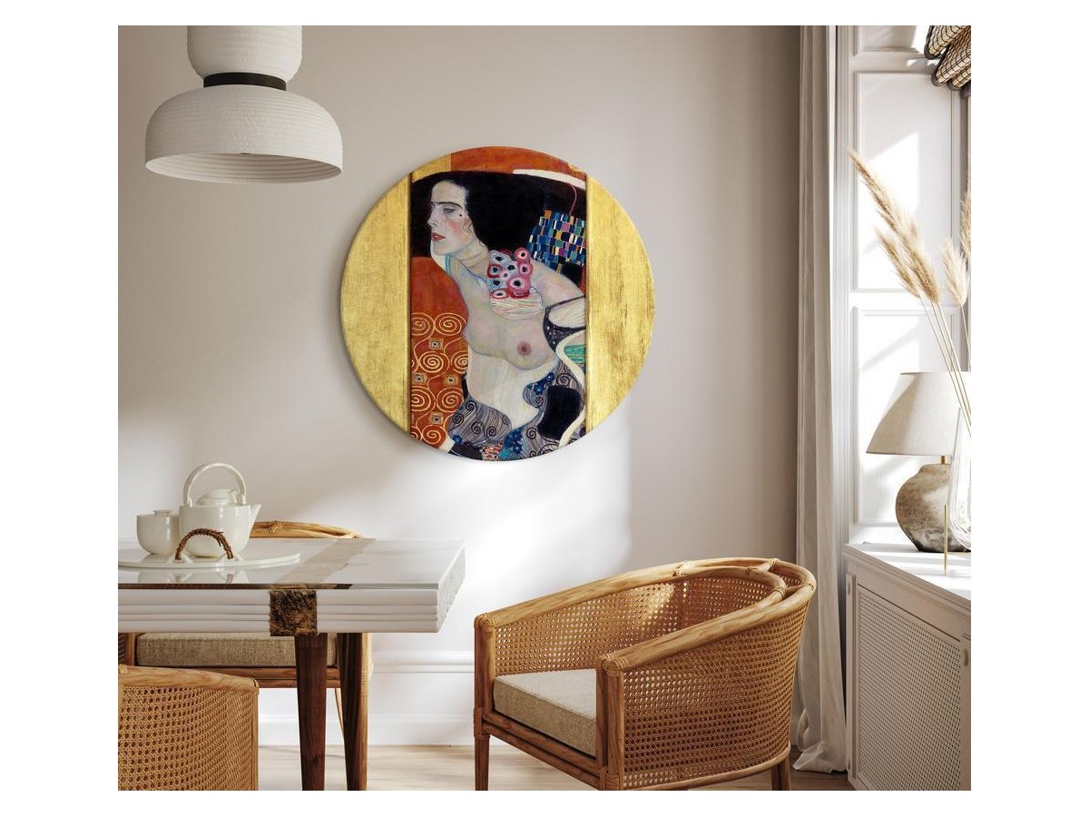 Le tableau sur toile rond "Tableau rond - Gustav Klimt – Judith II;" est une décoration moderne qui s'intègre parfaitement dans les dernières tendances en matière de design d'intérieur, enrichissant à la fois les pièces meublées de façon traditionnelle et les maisons et les bureaux modernes. La métamorphose est à portée de main ! Que nous souhaitions changer l'intérieur de notre appartement - un salon, une chambre, un bureau à domicile ou une chambre d'adolescent, ou que nous souhaitions décorer un bureau, une salle d'attente, un café, un salon de beauté ou tout autre espace dans un lieu public, le tableau rond apportera une nouvelle qualité à l'intérieur et brisera sa monotonie. Les tableaux sur toile ronds de notre offre correspondent à différents agencements et styles de pièces, parmi lesquelles il y a des propositions adaptées aux intérieurs glamour, bohème, vintage, industriels et bien d'autres. Si vous recherchez une décoration traditionnelle avec une touche moderne, un tableau en forme de cercle est une proposition pour votre intérieur !