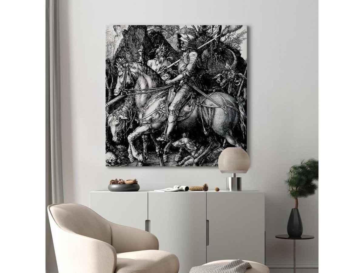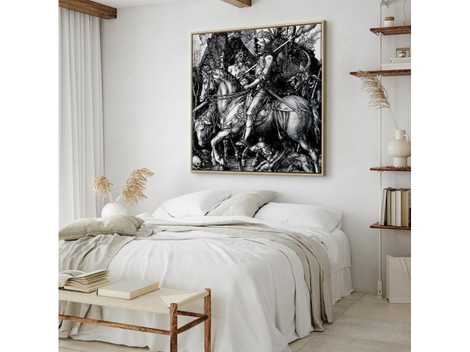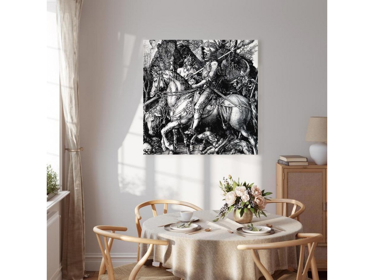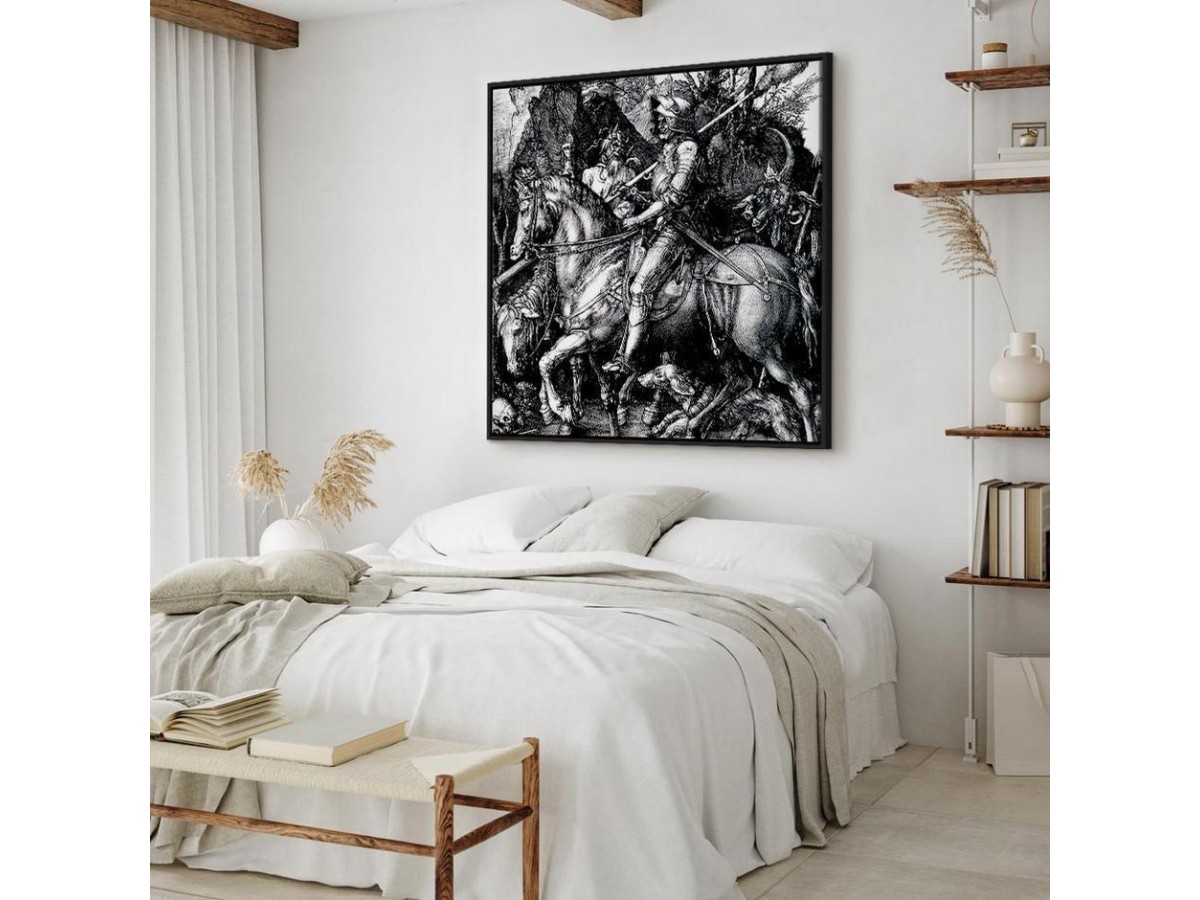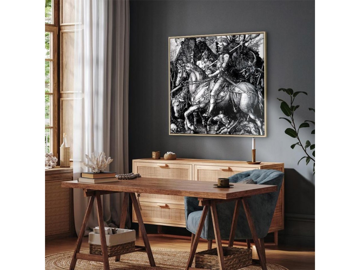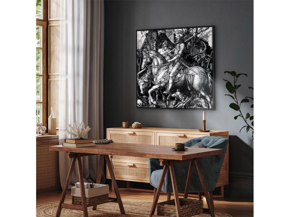 Les tableaux disponibles dans notre offre sont créés à l’aide de l'impression numérique sur toile de la plus haute qualité pour embellir votre intérieur. L’impression numérique sur toile sous la forme d’un tableau unit la tradition de la peinture sur toile avec la technologie moderne. Un effet final de ce mariage est le tableau moderne "Tableau - Albrecht Dürer – Knight, Death and the Devil" qui peut s’accorder parfaitement avec le style de votre pièce. Les tableaux complètent la décoration de chaque intérieur et lui donnent du caractère. La décoration murale sous la forme des tableaux constitue la dernière touche dans la décoration d’intérieur. Les tableaux déco complètent la décoration de chaque espace et la rendent plus accueillante. Souvent, ils constituent une touche personnelle dans l’intérieur, en reflétant la personnalité et le goût des habitants. Les tableaux déco que nous vous proposons dans notre offre sont des impressions numériques de la plus haute qualité réalisées sur toile. Cette technique de réalisation permet d’obtenir une image possédant une richesse de détails dont les couleurs sont vives et très fraîches. Un tableau moderne s’accorde parfaitement à des intérieurs aménagés dans le style moderne, mais aussi dans le style minimaliste et dans le style zen.