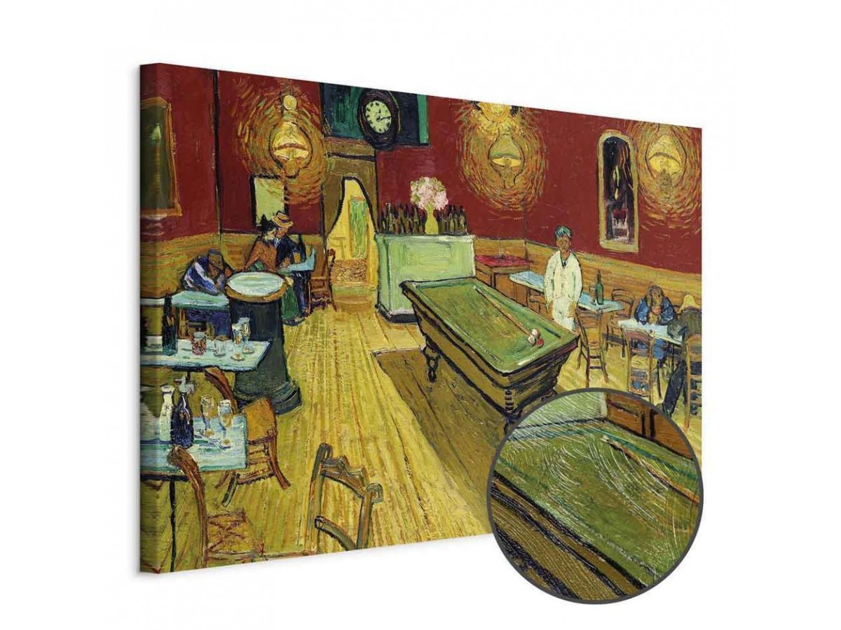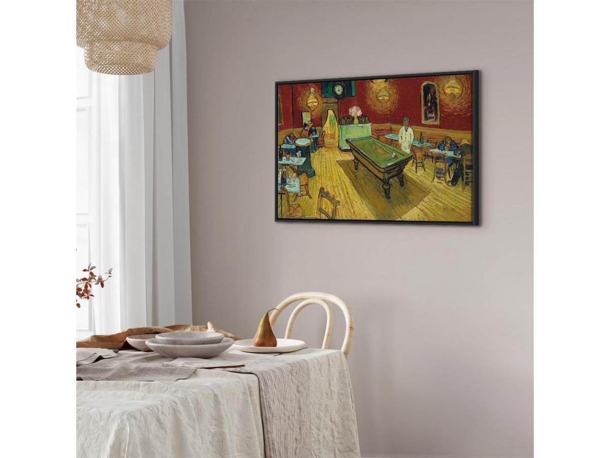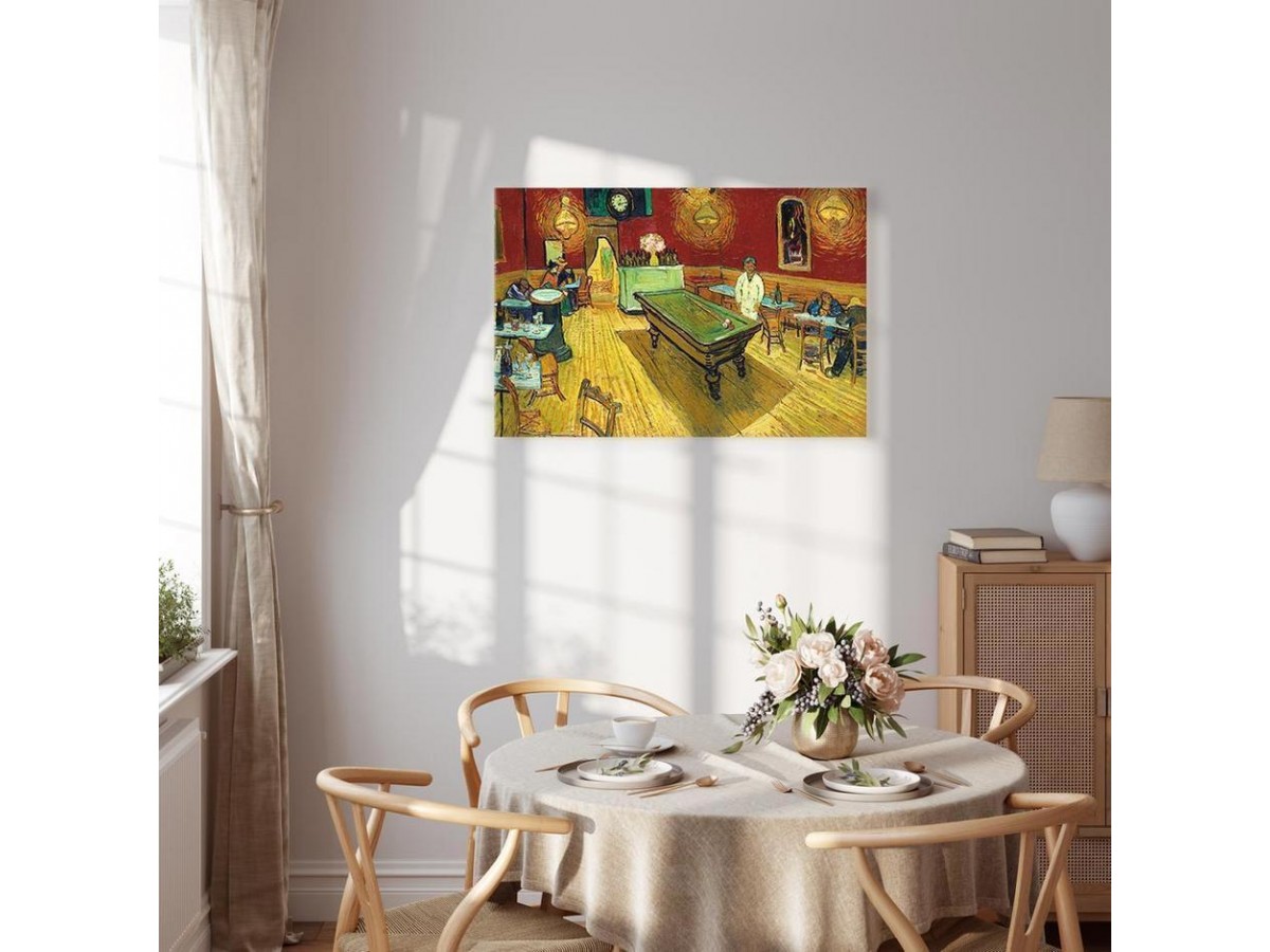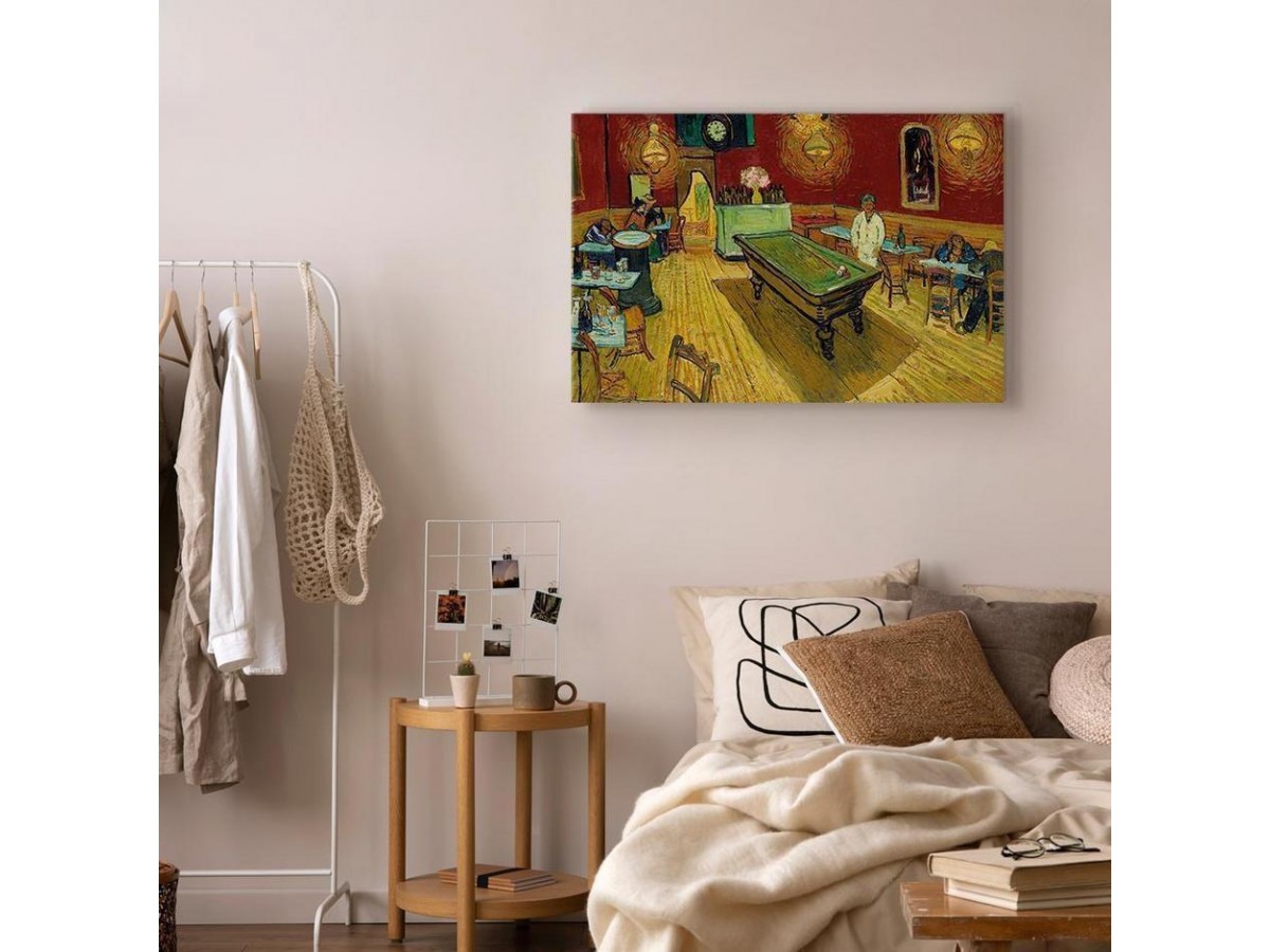 Les tableaux disponibles dans notre offre sont créés à l’aide de l'impression numérique sur toile de la plus haute qualité pour embellir votre intérieur. L’impression numérique sur toile sous la forme d’un tableau unit la tradition de la peinture sur toile avec la technologie moderne. Un effet final de ce mariage est le tableau moderne "Tableau - Vincent van Gogh – The Night Café" qui peut s’accorder parfaitement avec le style de votre pièce. Les tableaux complètent la décoration de chaque intérieur et lui donnent du caractère. La décoration murale sous la forme des tableaux constitue la dernière touche dans la décoration d’intérieur. Les tableaux déco complètent la décoration de chaque espace et la rendent plus accueillante. Souvent, ils constituent une touche personnelle dans l’intérieur, en reflétant la personnalité et le goût des habitants. Les tableaux déco que nous vous proposons dans notre offre sont des impressions numériques de la plus haute qualité réalisées sur toile. Cette technique de réalisation permet d’obtenir une image possédant une richesse de détails dont les couleurs sont vives et très fraîches. Un tableau moderne s’accorde parfaitement à des intérieurs aménagés dans le style moderne, mais aussi dans le style minimaliste et dans le style zen.