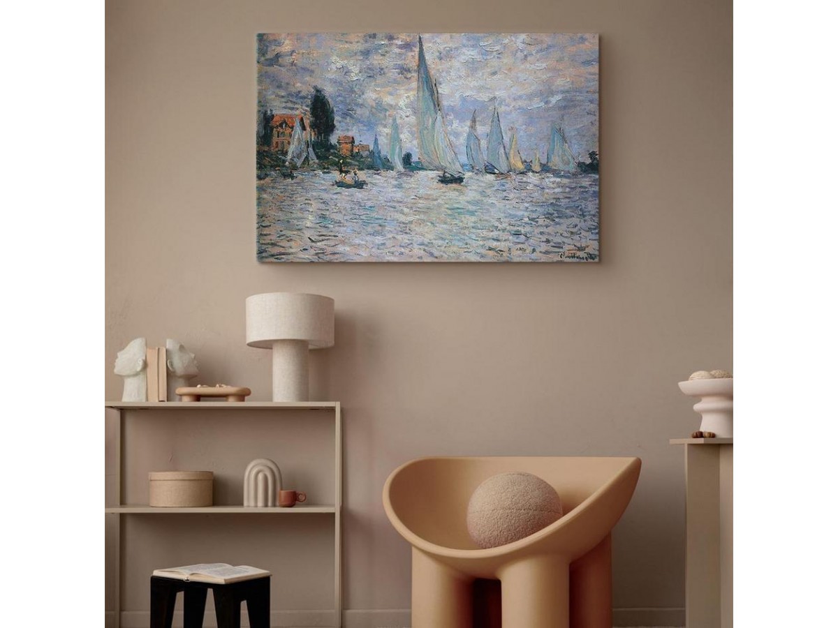 Les tableaux disponibles dans notre offre sont créés à l’aide de l'impression numérique sur toile de la plus haute qualité pour embellir votre intérieur. L’impression numérique sur toile sous la forme d’un tableau unit la tradition de la peinture sur toile avec la technologie moderne. Un effet final de ce mariage est le tableau moderne "Tableau - Claude Monet - Sailboats, Regatta in Argenteuil" qui peut s’accorder parfaitement avec le style de votre pièce. Les tableaux complètent la décoration de chaque intérieur et lui donnent du caractère. La décoration murale sous la forme des tableaux constitue la dernière touche dans la décoration d’intérieur. Les tableaux déco complètent la décoration de chaque espace et la rendent plus accueillante. Souvent, ils constituent une touche personnelle dans l’intérieur, en reflétant la personnalité et le goût des habitants. Les tableaux déco que nous vous proposons dans notre offre sont des impressions numériques de la plus haute qualité réalisées sur toile. Cette technique de réalisation permet d’obtenir une image possédant une richesse de détails dont les couleurs sont vives et très fraîches. Un tableau moderne s’accorde parfaitement à des intérieurs aménagés dans le style moderne, mais aussi dans le style minimaliste et dans le style zen.