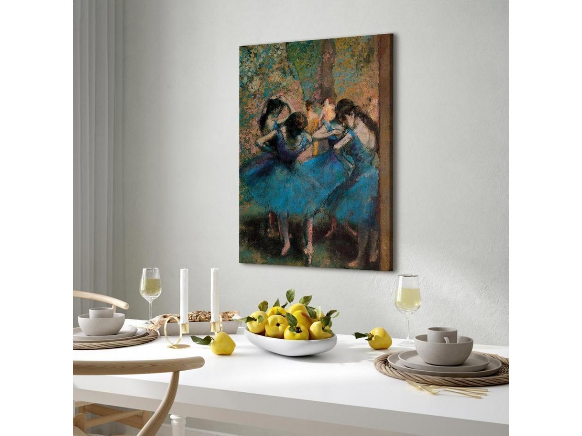 Les tableaux disponibles dans notre offre sont créés à l’aide de l'impression numérique sur toile de la plus haute qualité pour embellir votre intérieur. L’impression numérique sur toile sous la forme d’un tableau unit la tradition de la peinture sur toile avec la technologie moderne. Un effet final de ce mariage est le tableau moderne "Tableau - Edgar Degas – Blue Dancers" qui peut s’accorder parfaitement avec le style de votre pièce. Les tableaux complètent la décoration de chaque intérieur et lui donnent du caractère. La décoration murale sous la forme des tableaux constitue la dernière touche dans la décoration d’intérieur. Les tableaux déco complètent la décoration de chaque espace et la rendent plus accueillante. Souvent, ils constituent une touche personnelle dans l’intérieur, en reflétant la personnalité et le goût des habitants. Les tableaux déco que nous vous proposons dans notre offre sont des impressions numériques de la plus haute qualité réalisées sur toile. Cette technique de réalisation permet d’obtenir une image possédant une richesse de détails dont les couleurs sont vives et très fraîches. Un tableau moderne s’accorde parfaitement à des intérieurs aménagés dans le style moderne, mais aussi dans le style minimaliste et dans le style zen.