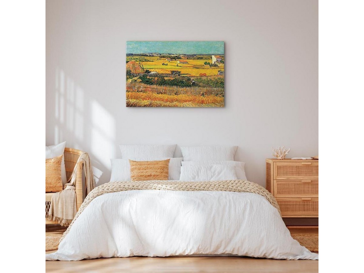 Les tableaux disponibles dans notre offre sont créés à l’aide de l'impression numérique sur toile de la plus haute qualité pour embellir votre intérieur. L’impression numérique sur toile sous la forme d’un tableau unit la tradition de la peinture sur toile avec la technologie moderne. Un effet final de ce mariage est le tableau moderne "Tableau - Vincent van Gogh – The Harvest" qui peut s’accorder parfaitement avec le style de votre pièce. Les tableaux complètent la décoration de chaque intérieur et lui donnent du caractère. La décoration murale sous la forme des tableaux constitue la dernière touche dans la décoration d’intérieur. Les tableaux déco complètent la décoration de chaque espace et la rendent plus accueillante. Souvent, ils constituent une touche personnelle dans l’intérieur, en reflétant la personnalité et le goût des habitants. Les tableaux déco que nous vous proposons dans notre offre sont des impressions numériques de la plus haute qualité réalisées sur toile. Cette technique de réalisation permet d’obtenir une image possédant une richesse de détails dont les couleurs sont vives et très fraîches. Un tableau moderne s’accorde parfaitement à des intérieurs aménagés dans le style moderne, mais aussi dans le style minimaliste et dans le style zen.