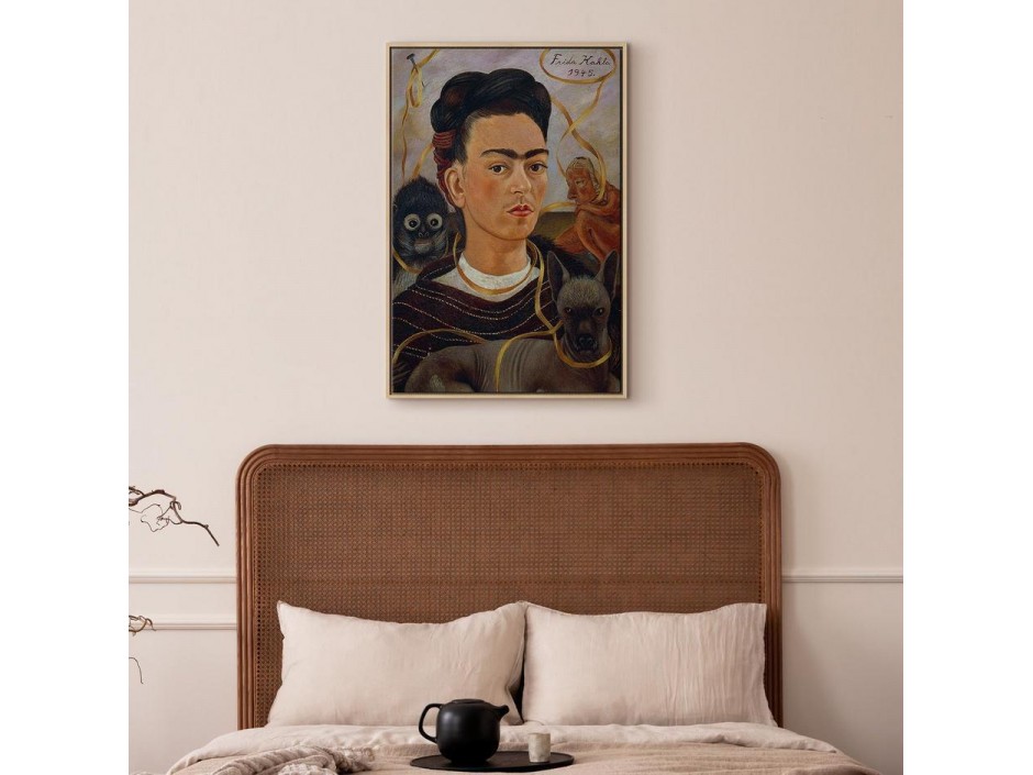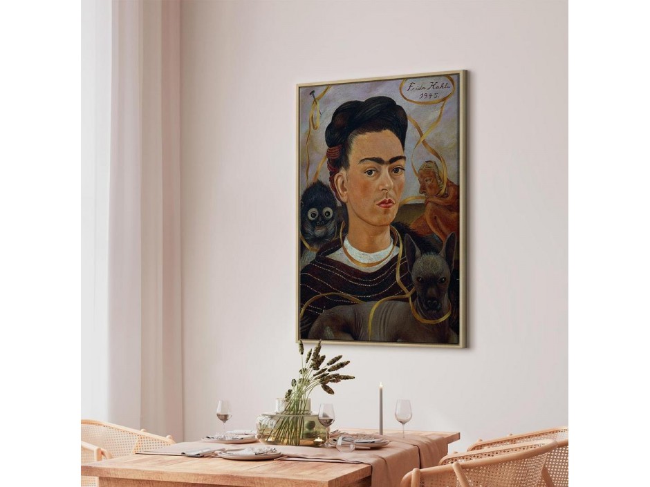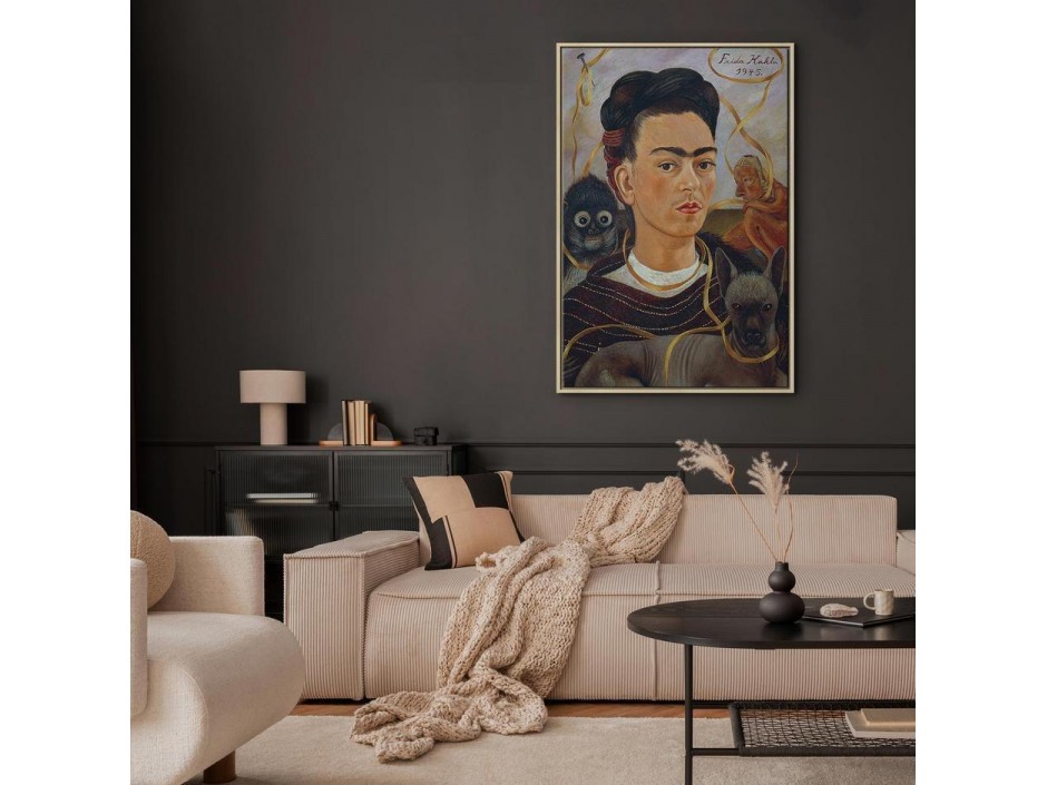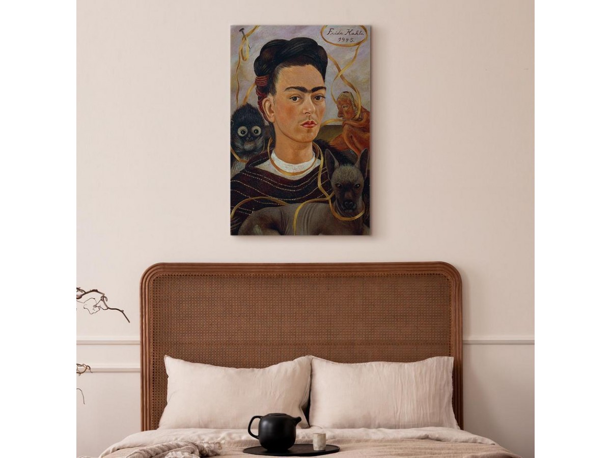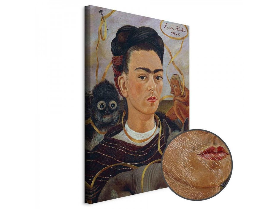 Les tableaux disponibles dans notre offre sont créés à l’aide de l'impression numérique sur toile de la plus haute qualité pour embellir votre intérieur. L’impression numérique sur toile sous la forme d’un tableau unit la tradition de la peinture sur toile avec la technologie moderne. Un effet final de ce mariage est le tableau moderne "Tableau - Frida Kahlo – Self-Portrait with Changuito" qui peut s’accorder parfaitement avec le style de votre pièce. Les tableaux complètent la décoration de chaque intérieur et lui donnent du caractère. La décoration murale sous la forme des tableaux constitue la dernière touche dans la décoration d’intérieur. Les tableaux déco complètent la décoration de chaque espace et la rendent plus accueillante. Souvent, ils constituent une touche personnelle dans l’intérieur, en reflétant la personnalité et le goût des habitants. Les tableaux déco que nous vous proposons dans notre offre sont des impressions numériques de la plus haute qualité réalisées sur toile. Cette technique de réalisation permet d’obtenir une image possédant une richesse de détails dont les couleurs sont vives et très fraîches. Un tableau moderne s’accorde parfaitement à des intérieurs aménagés dans le style moderne, mais aussi dans le style minimaliste et dans le style zen.
