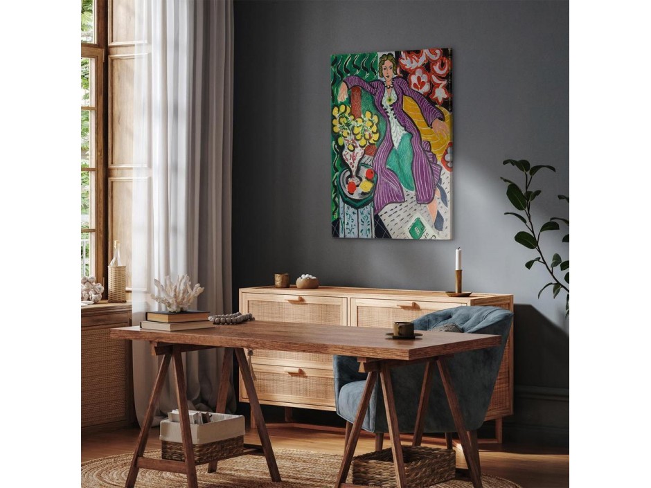 Les tableaux disponibles dans notre offre sont créés à l’aide de l'impression numérique sur toile de la plus haute qualité pour embellir votre intérieur. L’impression numérique sur toile sous la forme d’un tableau unit la tradition de la peinture sur toile avec la technologie moderne. Un effet final de ce mariage est le tableau moderne "Tableau - Henri Matisse – Woman in a Purple Coat" qui peut s’accorder parfaitement avec le style de votre pièce. Les tableaux complètent la décoration de chaque intérieur et lui donnent du caractère. La décoration murale sous la forme des tableaux constitue la dernière touche dans la décoration d’intérieur. Les tableaux déco complètent la décoration de chaque espace et la rendent plus accueillante. Souvent, ils constituent une touche personnelle dans l’intérieur, en reflétant la personnalité et le goût des habitants. Les tableaux déco que nous vous proposons dans notre offre sont des impressions numériques de la plus haute qualité réalisées sur toile. Cette technique de réalisation permet d’obtenir une image possédant une richesse de détails dont les couleurs sont vives et très fraîches. Un tableau moderne s’accorde parfaitement à des intérieurs aménagés dans le style moderne, mais aussi dans le style minimaliste et dans le style zen.
