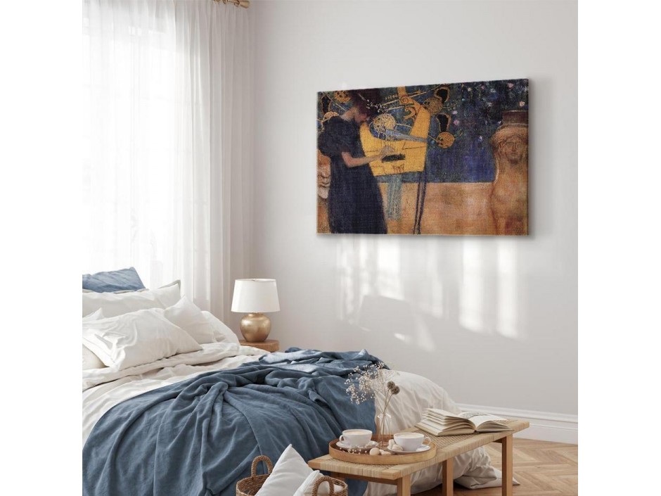 Les tableaux disponibles dans notre offre sont créés à l’aide de l'impression numérique sur toile de la plus haute qualité pour embellir votre intérieur. L’impression numérique sur toile sous la forme d’un tableau unit la tradition de la peinture sur toile avec la technologie moderne. Un effet final de ce mariage est le tableau moderne "Tableau - Gustav Klimt – Music" qui peut s’accorder parfaitement avec le style de votre pièce. Les tableaux complètent la décoration de chaque intérieur et lui donnent du caractère. La décoration murale sous la forme des tableaux constitue la dernière touche dans la décoration d’intérieur. Les tableaux déco complètent la décoration de chaque espace et la rendent plus accueillante. Souvent, ils constituent une touche personnelle dans l’intérieur, en reflétant la personnalité et le goût des habitants. Les tableaux déco que nous vous proposons dans notre offre sont des impressions numériques de la plus haute qualité réalisées sur toile. Cette technique de réalisation permet d’obtenir une image possédant une richesse de détails dont les couleurs sont vives et très fraîches. Un tableau moderne s’accorde parfaitement à des intérieurs aménagés dans le style moderne, mais aussi dans le style minimaliste et dans le style zen.