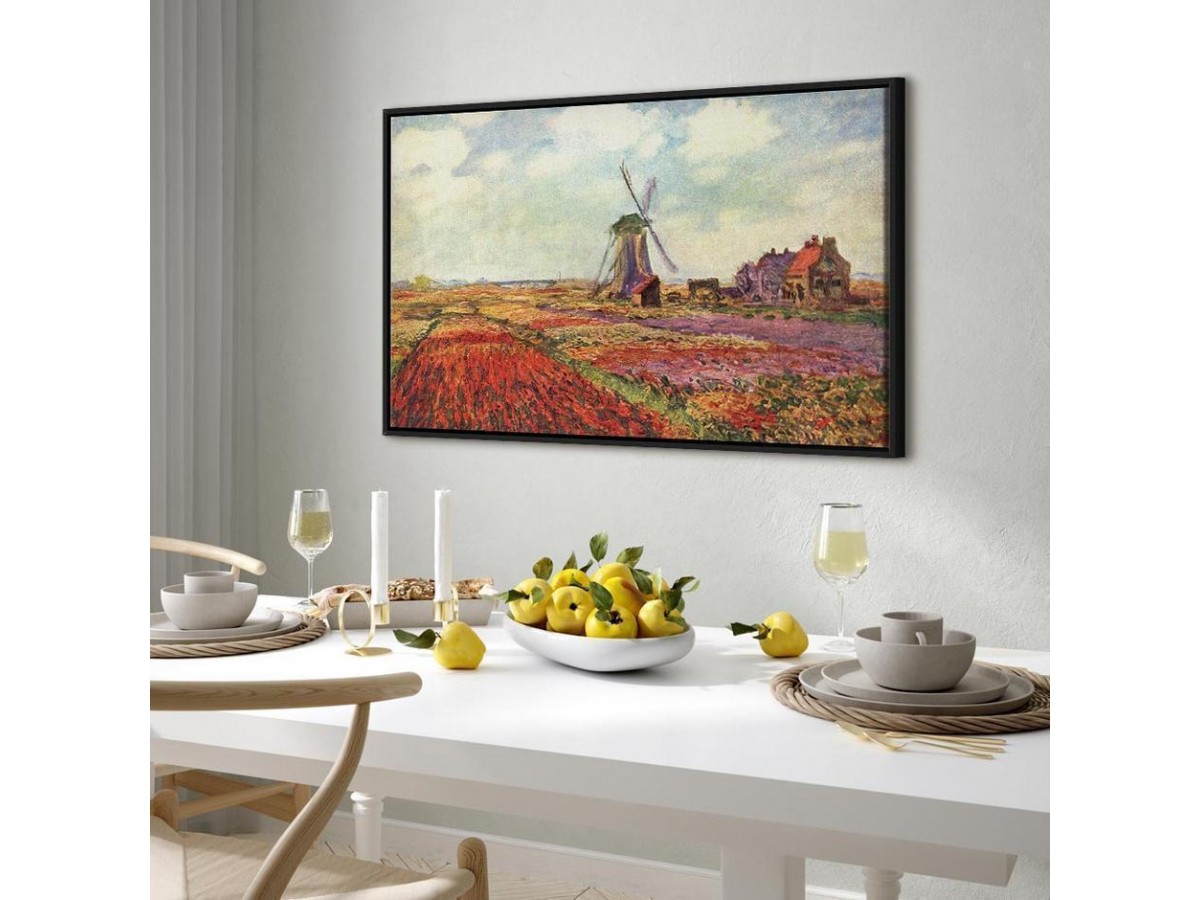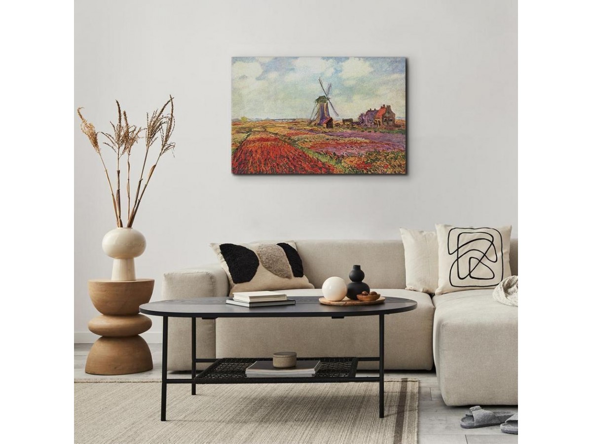 Les tableaux disponibles dans notre offre sont créés à l’aide de l'impression numérique sur toile de la plus haute qualité pour embellir votre intérieur. L’impression numérique sur toile sous la forme d’un tableau unit la tradition de la peinture sur toile avec la technologie moderne. Un effet final de ce mariage est le tableau moderne "Tableau - Claude Monet – Tulip Fields with Windmill" qui peut s’accorder parfaitement avec le style de votre pièce. Les tableaux complètent la décoration de chaque intérieur et lui donnent du caractère. La décoration murale sous la forme des tableaux constitue la dernière touche dans la décoration d’intérieur. Les tableaux déco complètent la décoration de chaque espace et la rendent plus accueillante. Souvent, ils constituent une touche personnelle dans l’intérieur, en reflétant la personnalité et le goût des habitants. Les tableaux déco que nous vous proposons dans notre offre sont des impressions numériques de la plus haute qualité réalisées sur toile. Cette technique de réalisation permet d’obtenir une image possédant une richesse de détails dont les couleurs sont vives et très fraîches. Un tableau moderne s’accorde parfaitement à des intérieurs aménagés dans le style moderne, mais aussi dans le style minimaliste et dans le style zen.
