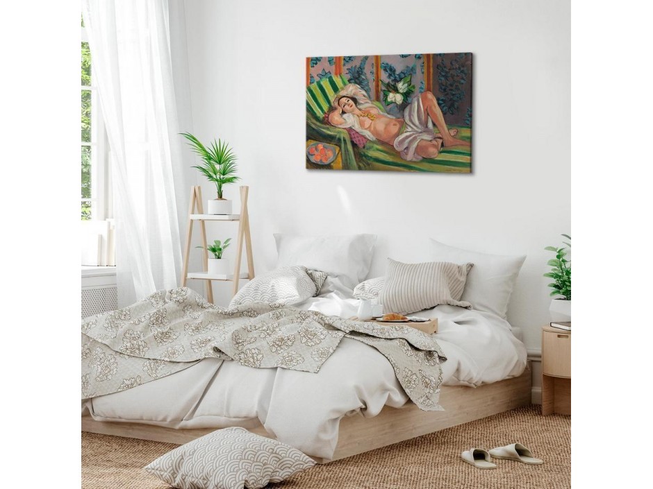 Les tableaux disponibles dans notre offre sont créés à l’aide de l'impression numérique sur toile de la plus haute qualité pour embellir votre intérieur. L’impression numérique sur toile sous la forme d’un tableau unit la tradition de la peinture sur toile avec la technologie moderne. Un effet final de ce mariage est le tableau moderne "Tableau - Henri Matisse – Reclining Odalisque with Magnolias" qui peut s’accorder parfaitement avec le style de votre pièce. Les tableaux complètent la décoration de chaque intérieur et lui donnent du caractère. La décoration murale sous la forme des tableaux constitue la dernière touche dans la décoration d’intérieur. Les tableaux déco complètent la décoration de chaque espace et la rendent plus accueillante. Souvent, ils constituent une touche personnelle dans l’intérieur, en reflétant la personnalité et le goût des habitants. Les tableaux déco que nous vous proposons dans notre offre sont des impressions numériques de la plus haute qualité réalisées sur toile. Cette technique de réalisation permet d’obtenir une image possédant une richesse de détails dont les couleurs sont vives et très fraîches. Un tableau moderne s’accorde parfaitement à des intérieurs aménagés dans le style moderne, mais aussi dans le style minimaliste et dans le style zen.