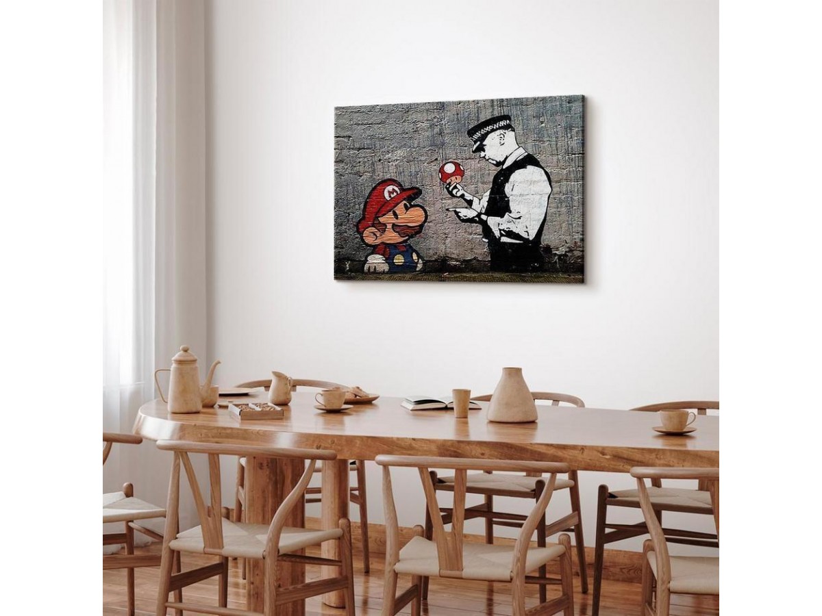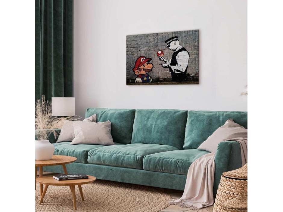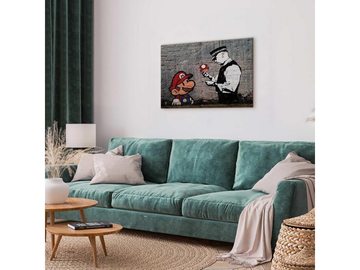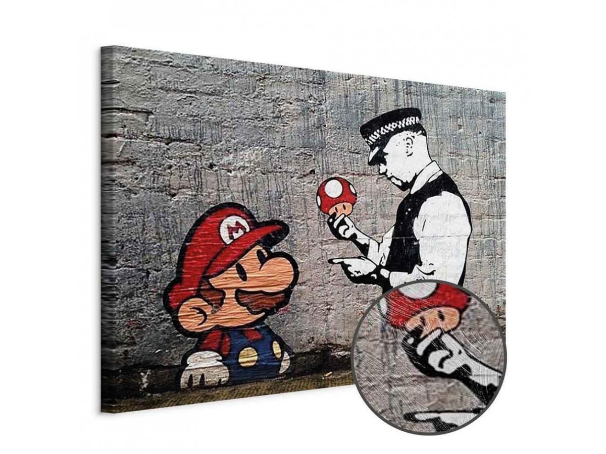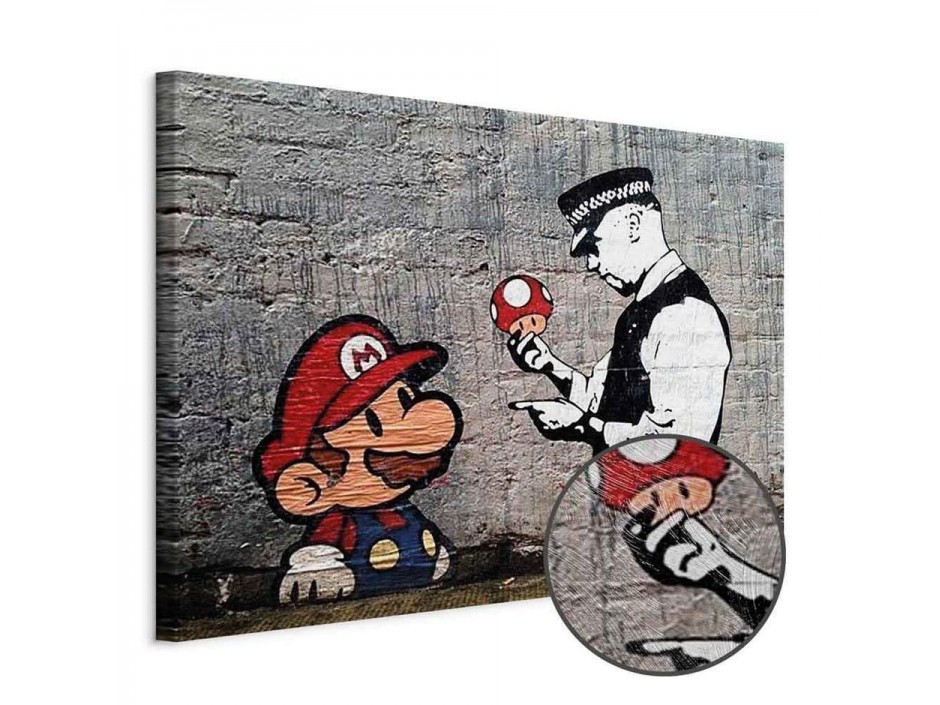 Les tableaux disponibles dans notre offre sont créés à l’aide de l'impression numérique sur toile de la plus haute qualité pour embellir votre intérieur. L’impression numérique sur toile sous la forme d’un tableau unit la tradition de la peinture sur toile avec la technologie moderne. Un effet final de ce mariage est le tableau moderne "Tableau - Mario and Cop by Banksy" qui peut s’accorder parfaitement avec le style de votre pièce. Les tableaux complètent la décoration de chaque intérieur et lui donnent du caractère. La décoration murale sous la forme des tableaux constitue la dernière touche dans la décoration d’intérieur. Les tableaux déco complètent la décoration de chaque espace et la rendent plus accueillante. Souvent, ils constituent une touche personnelle dans l’intérieur, en reflétant la personnalité et le goût des habitants. Les tableaux déco que nous vous proposons dans notre offre sont des impressions numériques de la plus haute qualité réalisées sur toile. Cette technique de réalisation permet d’obtenir une image possédant une richesse de détails dont les couleurs sont vives et très fraîches. Un tableau moderne s’accorde parfaitement à des intérieurs aménagés dans le style moderne, mais aussi dans le style minimaliste et dans le style zen.