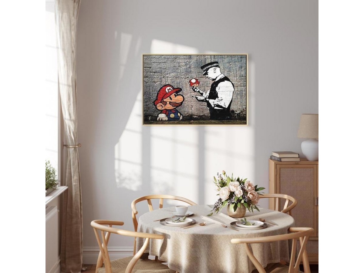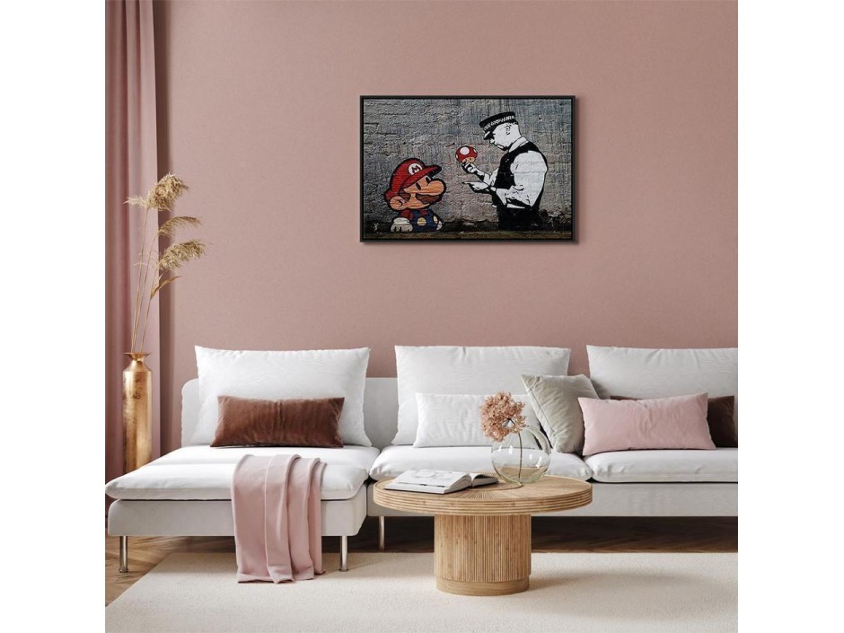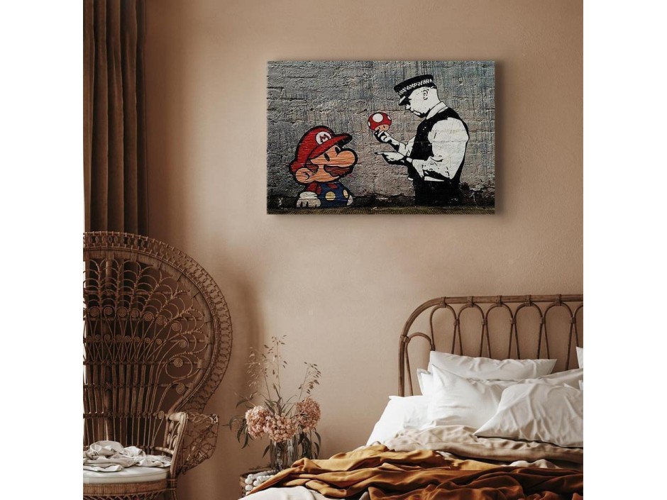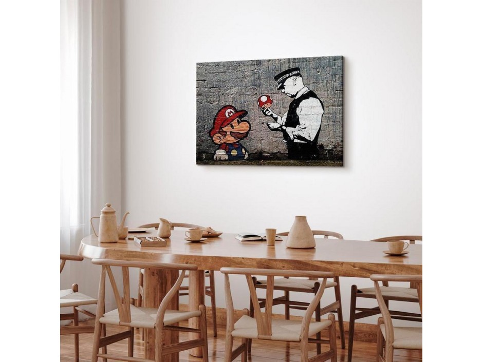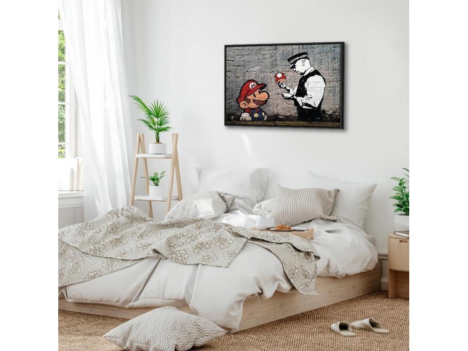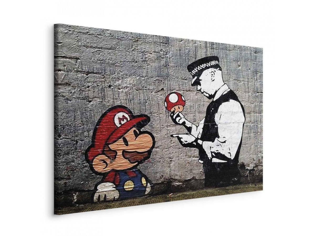 Les tableaux disponibles dans notre offre sont créés à l’aide de l'impression numérique sur toile de la plus haute qualité pour embellir votre intérieur. L’impression numérique sur toile sous la forme d’un tableau unit la tradition de la peinture sur toile avec la technologie moderne. Un effet final de ce mariage est le tableau moderne "Tableau - Mario and Cop by Banksy" qui peut s’accorder parfaitement avec le style de votre pièce. Les tableaux complètent la décoration de chaque intérieur et lui donnent du caractère. La décoration murale sous la forme des tableaux constitue la dernière touche dans la décoration d’intérieur. Les tableaux déco complètent la décoration de chaque espace et la rendent plus accueillante. Souvent, ils constituent une touche personnelle dans l’intérieur, en reflétant la personnalité et le goût des habitants. Les tableaux déco que nous vous proposons dans notre offre sont des impressions numériques de la plus haute qualité réalisées sur toile. Cette technique de réalisation permet d’obtenir une image possédant une richesse de détails dont les couleurs sont vives et très fraîches. Un tableau moderne s’accorde parfaitement à des intérieurs aménagés dans le style moderne, mais aussi dans le style minimaliste et dans le style zen.