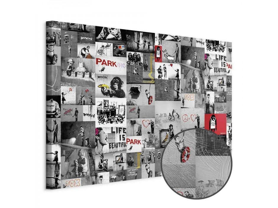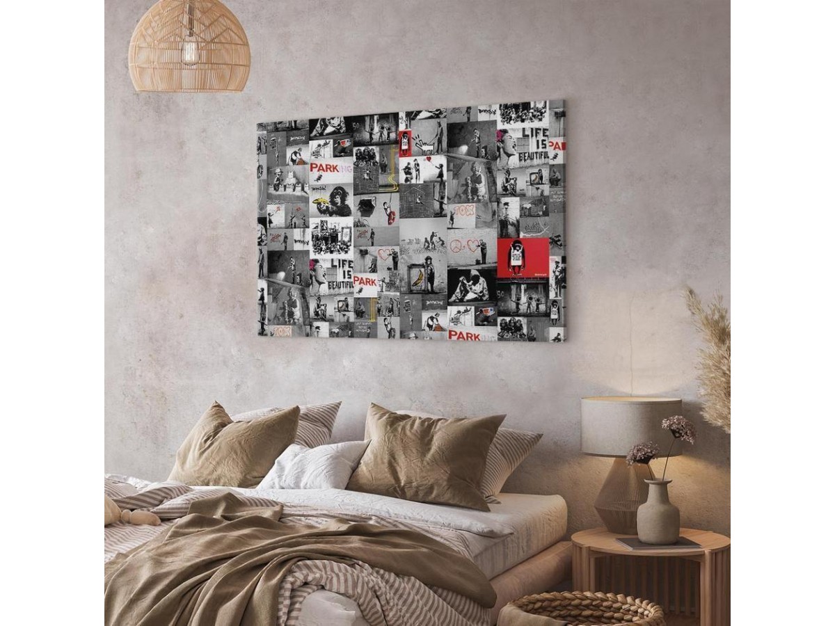 Les tableaux disponibles dans notre offre sont créés à l’aide de l'impression numérique sur toile de la plus haute qualité pour embellir votre intérieur. L’impression numérique sur toile sous la forme d’un tableau unit la tradition de la peinture sur toile avec la technologie moderne. Un effet final de ce mariage est le tableau moderne "Tableau - Street Art: Banksy" qui peut s’accorder parfaitement avec le style de votre pièce. Les tableaux complètent la décoration de chaque intérieur et lui donnent du caractère. La décoration murale sous la forme des tableaux constitue la dernière touche dans la décoration d’intérieur. Les tableaux déco complètent la décoration de chaque espace et la rendent plus accueillante. Souvent, ils constituent une touche personnelle dans l’intérieur, en reflétant la personnalité et le goût des habitants. Les tableaux déco que nous vous proposons dans notre offre sont des impressions numériques de la plus haute qualité réalisées sur toile. Cette technique de réalisation permet d’obtenir une image possédant une richesse de détails dont les couleurs sont vives et très fraîches. Un tableau moderne s’accorde parfaitement à des intérieurs aménagés dans le style moderne, mais aussi dans le style minimaliste et dans le style zen.