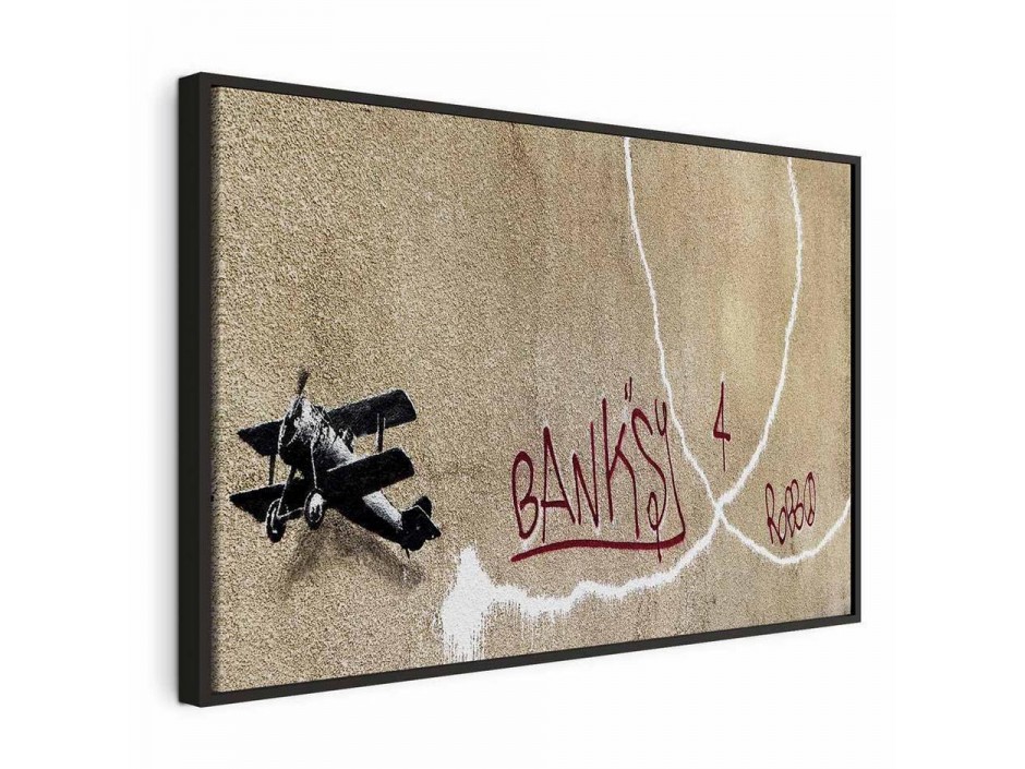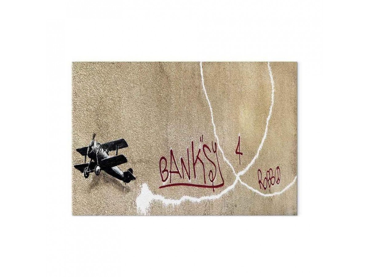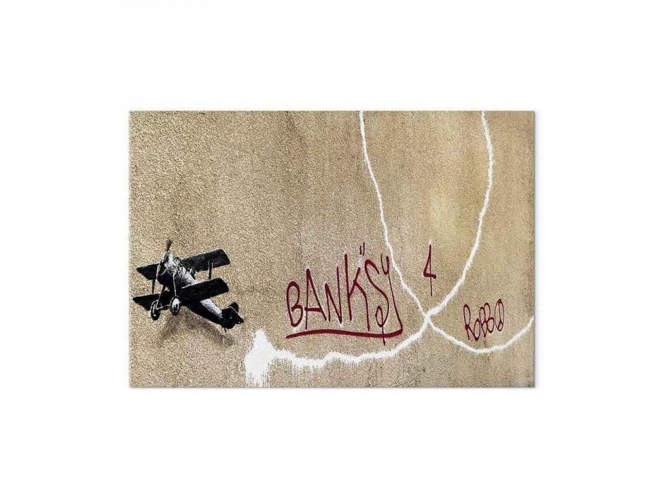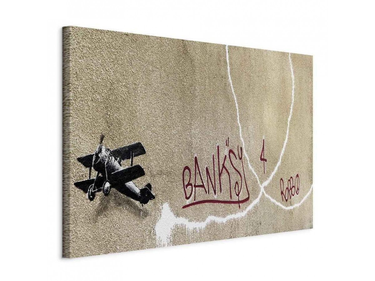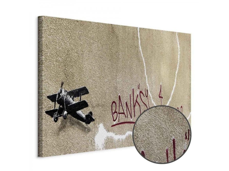 Tableau - Banksys Plane (1-part) - Red Graffiti Text on Mural Background