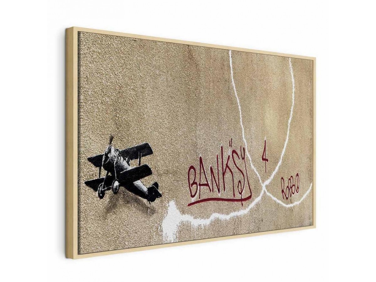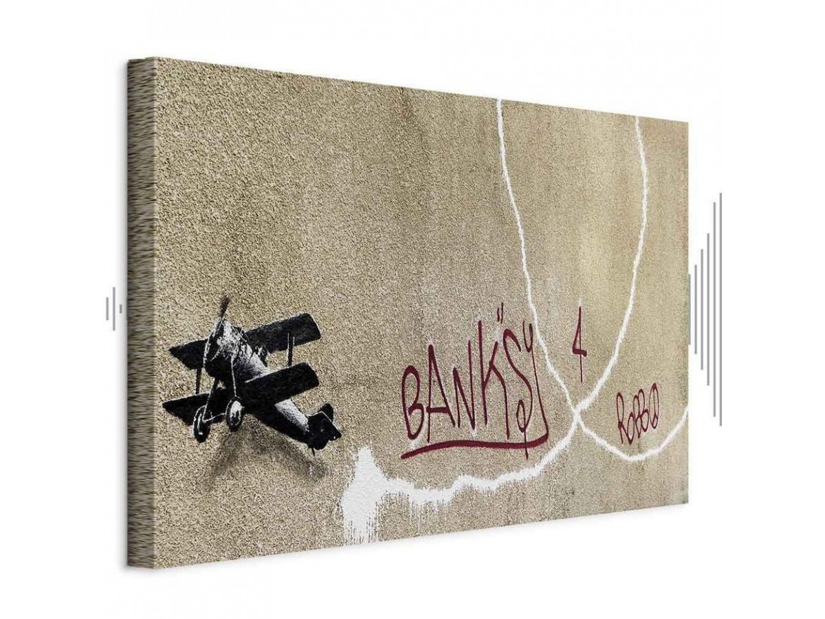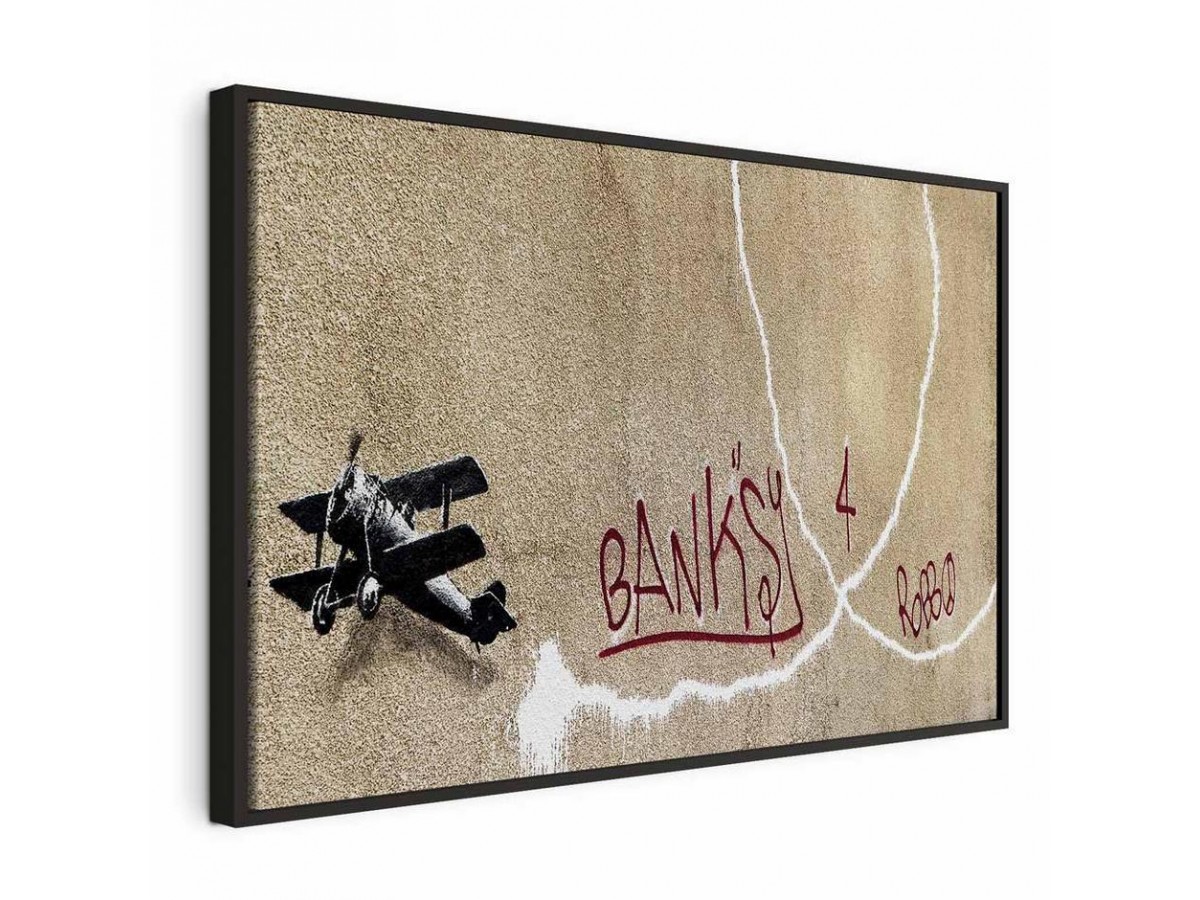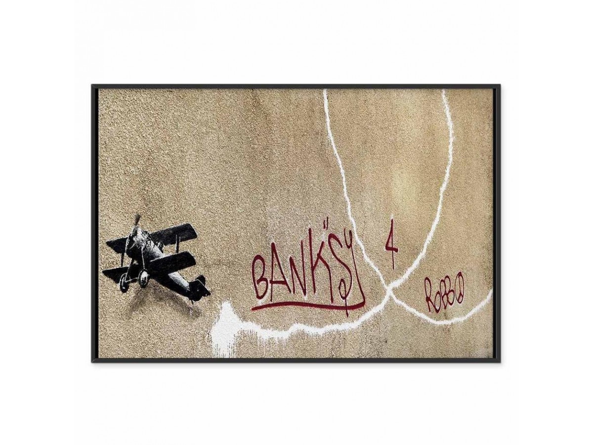 Tableau - Banksys Plane (1-part) - Red Graffiti Text on Mural Background