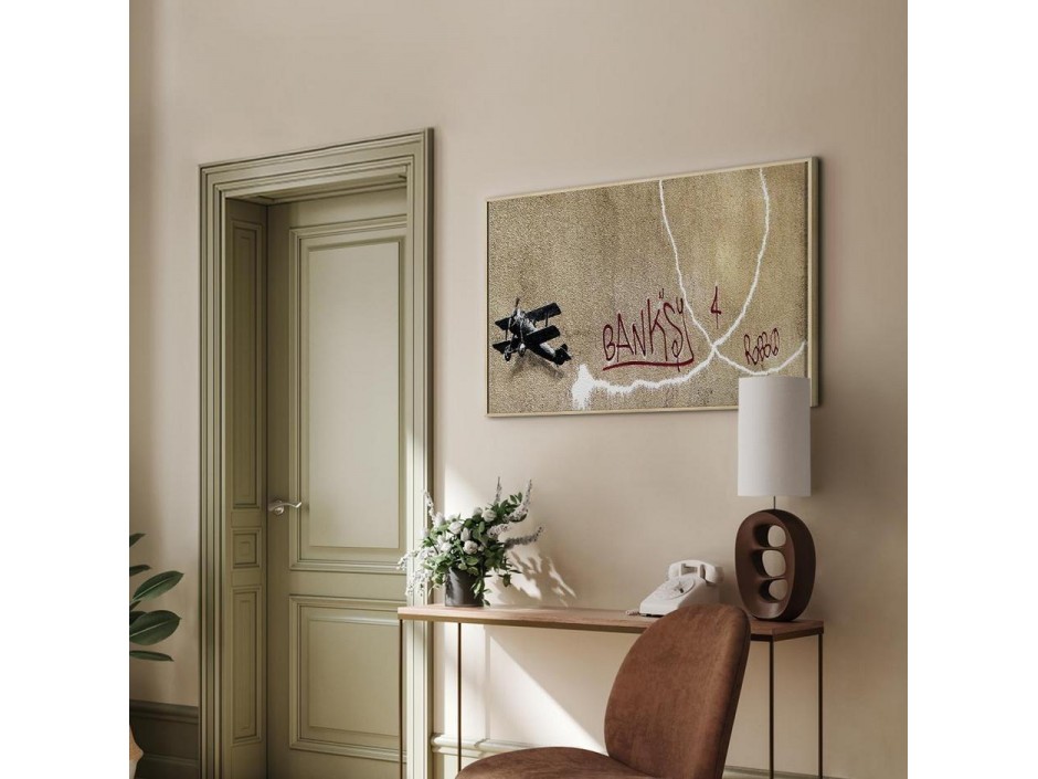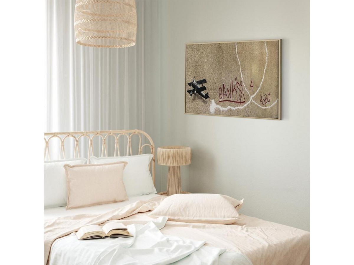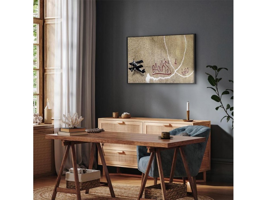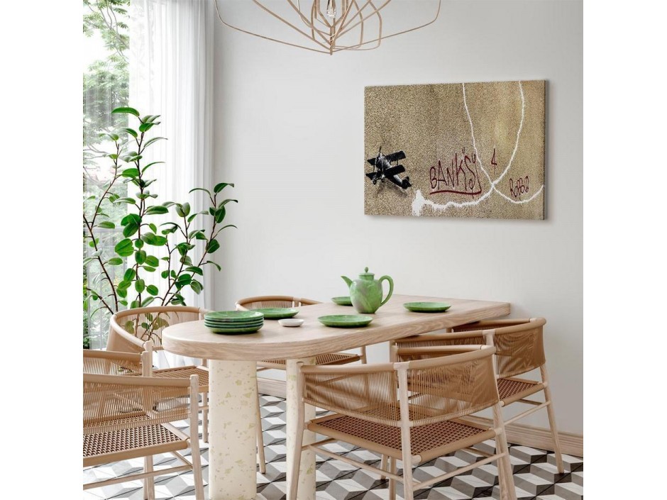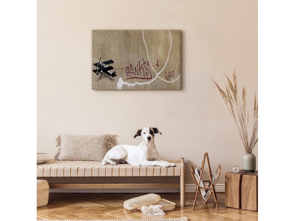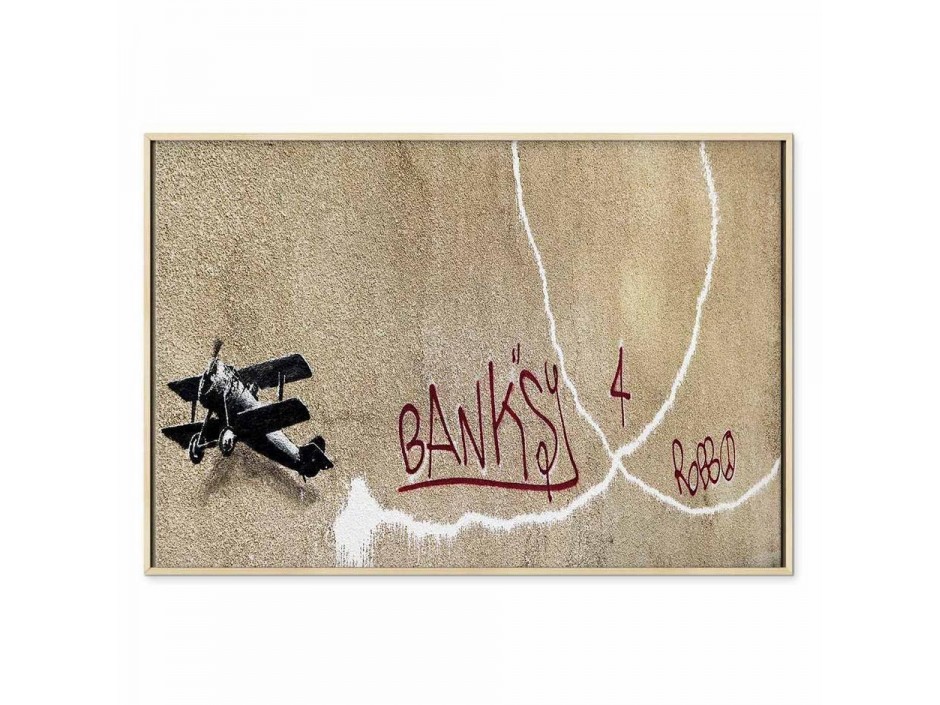 Tableau - Banksys Plane (1-part) - Red Graffiti Text on Mural Background