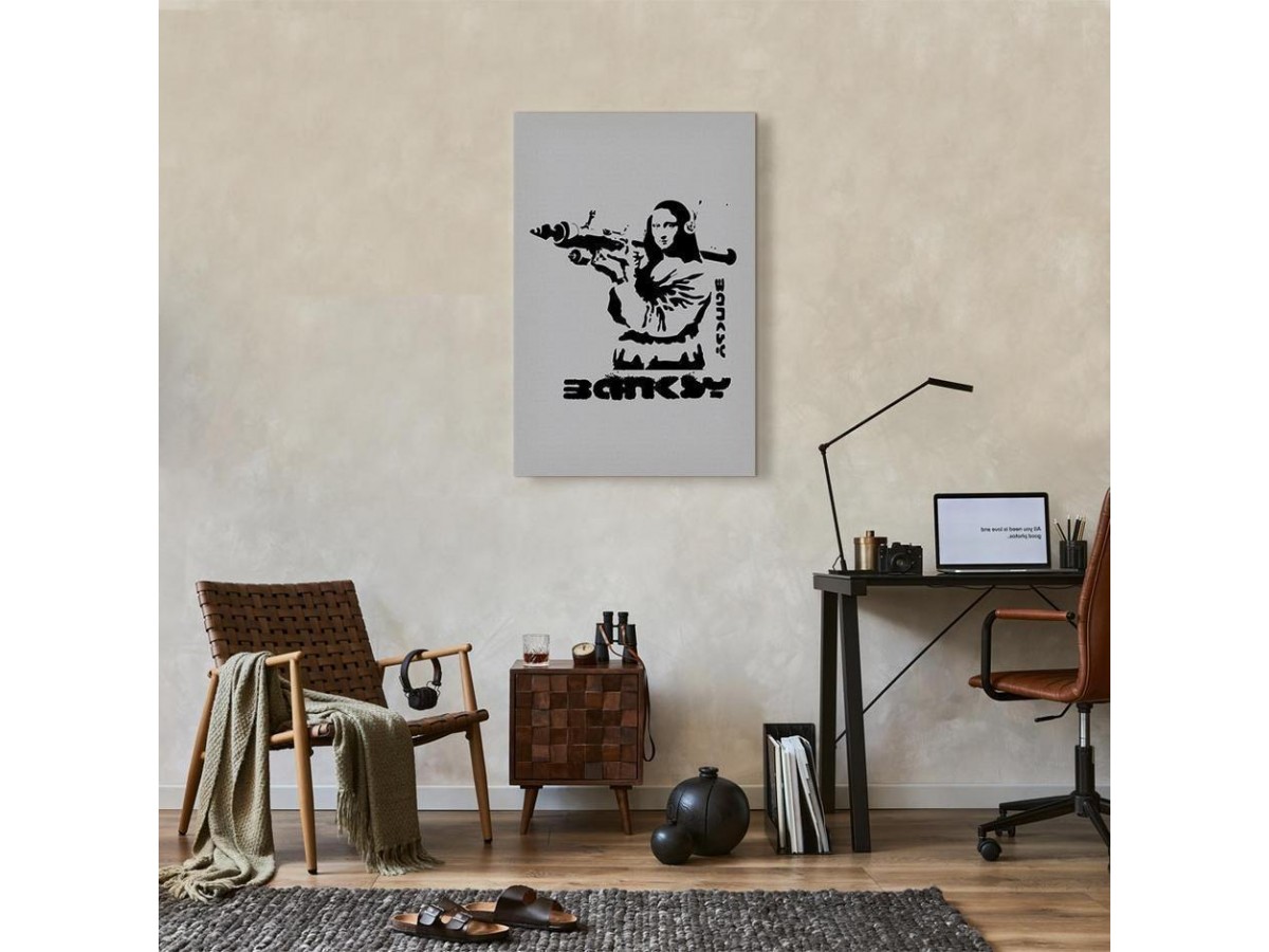 Les tableaux disponibles dans notre offre sont créés à l’aide de l'impression numérique sur toile de la plus haute qualité pour embellir votre intérieur. L’impression numérique sur toile sous la forme d’un tableau unit la tradition de la peinture sur toile avec la technologie moderne. Un effet final de ce mariage est le tableau moderne "Tableau - Contrast Duel (1-part) - Banksy on Mural with Mona Lisa" qui peut s’accorder parfaitement avec le style de votre pièce. Les tableaux complètent la décoration de chaque intérieur et lui donnent du caractère. La décoration murale sous la forme des tableaux constitue la dernière touche dans la décoration d’intérieur. Les tableaux déco complètent la décoration de chaque espace et la rendent plus accueillante. Souvent, ils constituent une touche personnelle dans l’intérieur, en reflétant la personnalité et le goût des habitants. Les tableaux déco que nous vous proposons dans notre offre sont des impressions numériques de la plus haute qualité réalisées sur toile. Cette technique de réalisation permet d’obtenir une image possédant une richesse de détails dont les couleurs sont vives et très fraîches. Un tableau moderne s’accorde parfaitement à des intérieurs aménagés dans le style moderne, mais aussi dans le style minimaliste et dans le style zen.
