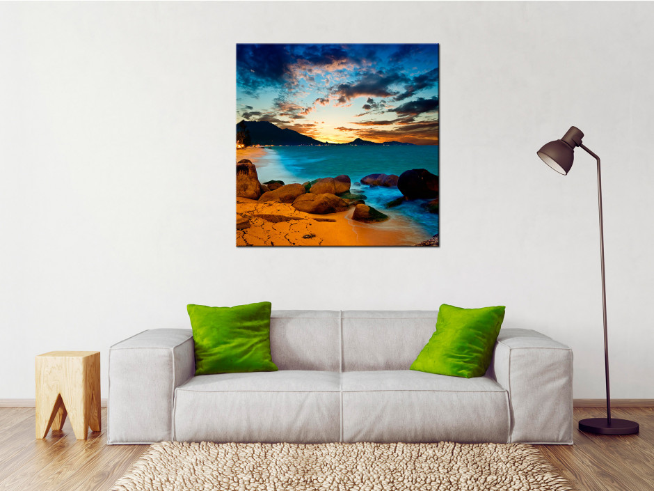 Tableau réalisé sur Aluminium Dibond "coucher de soleil sur la plage " est préconisé pour la décoration des intérieurs modernes. L’impression sur plaque d'aluminium Dibond a un rendu mat sans reflets. Les tableaux sur aluminium sont légers, faciles à nettoyer, et résistant à l’humidité. Ainsi le tableau fait ses preuves dans tous les intérieurs, aussi bien dans un salon, que dans une chambre, ou une salle de bain et même en terrasse.