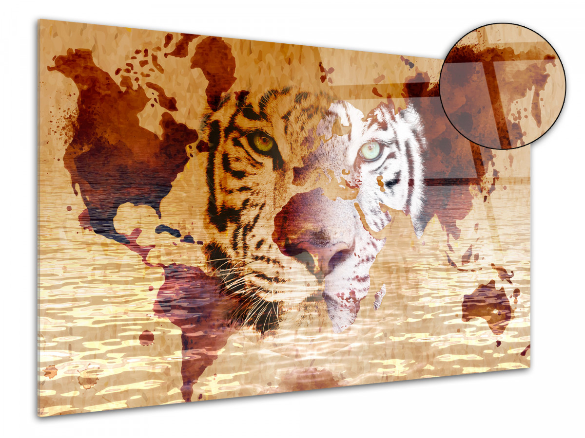 Tableau réalisé sur le verre acrylique "Tête de Lion et Carte du monde" est une excellente idée pour la décoration des intérieurs modernes. L’impression sur verre acrylique attire l'oeil grâce à l’effet de profondeur, et sera sublimer les salles de réceptions. Grâce à l’utilisation de nouvelles technologies d’impression, le tableau est doté d’une extrême brillance. Les tableaux sur plexiglas sont légers, faciles à nettoyer, et résistant à l’humidité. Ainsi le tableau fait ses preuves dans tous les intérieurs, aussi bien dans un salon, que dans une chambre, ou une salle de bain et même en terrasse. Grâce à la transparence du verre acrylique, la lumière le transperce et lui fait gagné un effet 3D.