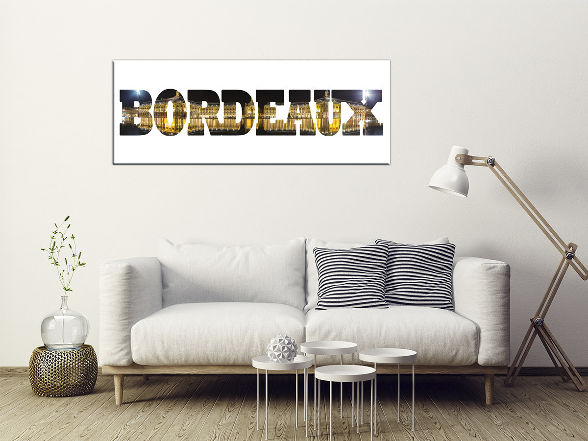 Tableau réalisé sur le verre acrylique "lettrage Bordeaux" est une excellente idée pour la décoration des intérieurs modernes. L’impression sur verre acrylique attire l'oeil grâce à l’effet de profondeur, et sera sublimer les salles de réceptions. Grâce à l’utilisation de nouvelles technologies d’impression, le tableau est doté d’une extrême brillance. Les tableaux sur plexiglas sont légers, faciles à nettoyer, et résistant à l’humidité. Ainsi le tableau fait ses preuves dans tous les intérieurs, aussi bien dans un salon, que dans une chambre, ou une salle de bain et même en terrasse. Grâce à la transparence du verre acrylique, la lumière le transperce et lui fait gagné un effet 3D.