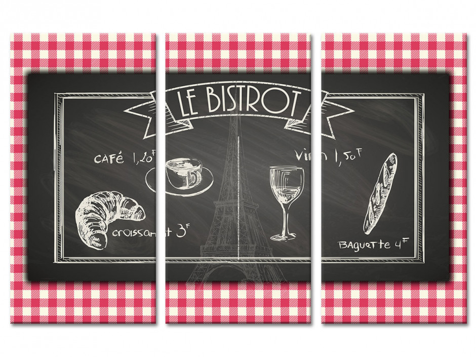 Tableau toile triptyque BISTROT À LA FRANÇAISE