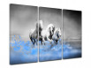 Faites de votre intérieur un lieu où il fait bon vivre avec ce tableau mural triptyque animaux représentant un troupeau de chevaux blancs sauvages, libres comme l'air. Les teintes de noir et blanc mêlées au bleu des éclaboussures , font de cette toile imprimée un cadre deco animaux incontournable. L'authenticité et la finesse de la toile ajoute un côté artistique que vous ne trouverez nulle part ailleurs.