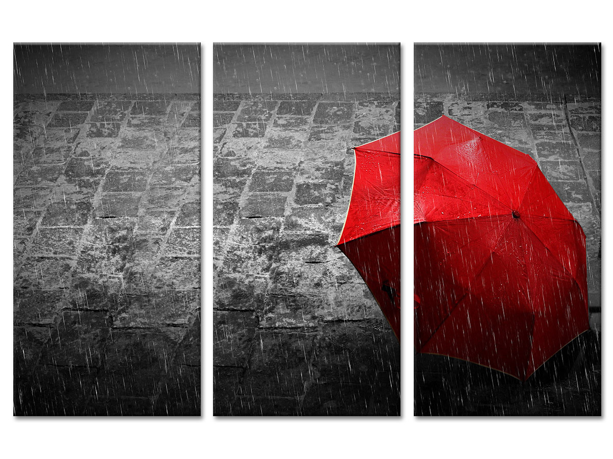 Une pluie de modernité s'abattra sur votre salon ou chambre, avec ce magnifique tableau urbain en pleine averse. Imprimé sur toile, ce cadre triptyque au style urbain est une photo en noir et blanc, dont seul le parapluie est coloré de rouge. Très contemporain cette toile murale sera un élément de décoration indispensable à votre décoration murale moderne. Faites vous plaisir !