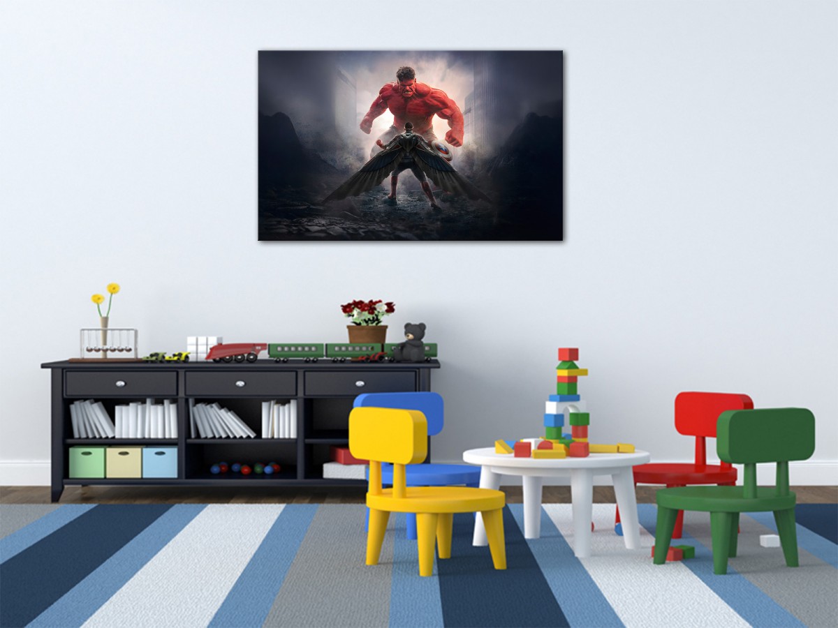 Le tableau "Falcon vs Red Hulk" de très haute qualité est le fruit du travail d’une équipe de designers très talentueux parmi lesquels se trouvent de jeunes artistes, graphistes et photographes avec les têtes pleines d’idées. Le tableau qui vous a intéressé est une combinaison d’une impression de la plus haute qualité, d’un travail manuel soigné et des meilleurs matériaux.