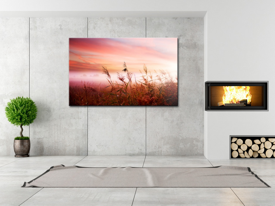 Vous qui désirez mettre dans la décoration de votre intérieur une atmosphère calme et paisible, ce tableau photo de la campagne brumeuse est parfait. Cette toile imprimée reflète à merveille cette ambiance de levé du jour. Quoi de plus énigmatique que cette photo de paysage aux couleurs pastels.