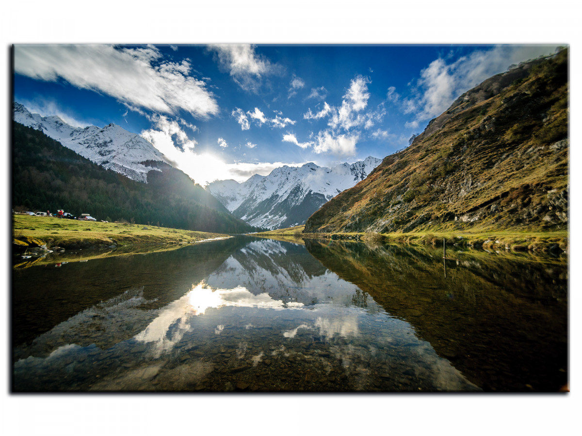 Ce tableau photo du lac d'Estaing apportera à votre décoration murale une touche de fraîcheur naturelle. Changez d'air avec ce tableau grand format déco et propulsez-vous en vacances entre les montagnes des Pyrénées. Ce tableau paysages offrira un air paisible à votre décoration murale. Donnez à vos pièces de vie une bouffée d'air frais avec ce tableau déco ensoleillé. Profitez des vacances toute l'année grâce à ce tableau coloré à la vue unique sur le lac et les montagnes.