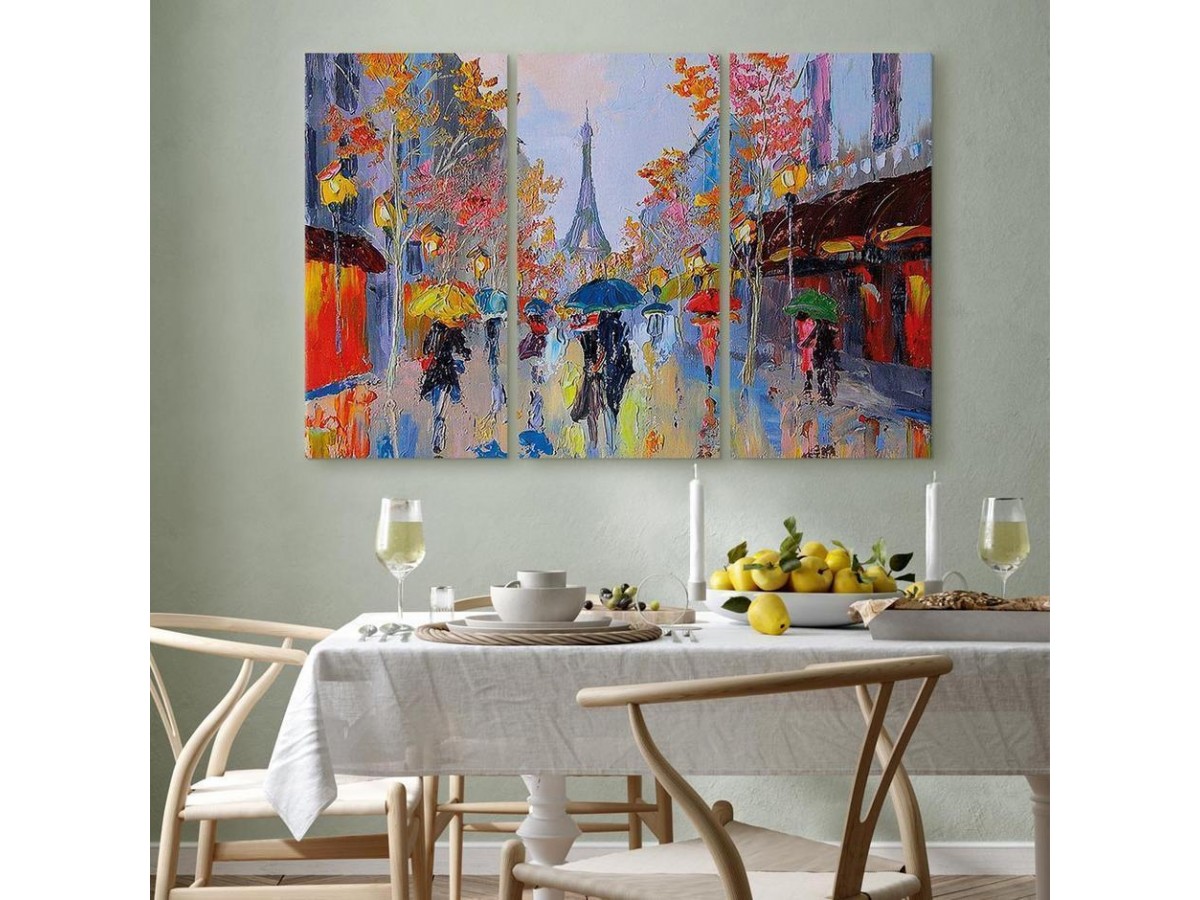 Les tableaux disponibles dans notre offre sont créés à l’aide de l'impression numérique sur toile de la plus haute qualité pour embellir votre intérieur. L’impression numérique sur toile sous la forme d’un tableau unit la tradition de la peinture sur toile avec la technologie moderne. Un effet final de ce mariage est le tableau moderne "Tableau - Rainy Paris" qui peut s’accorder parfaitement avec le style de votre pièce. Les tableaux complètent la décoration de chaque intérieur et lui donnent du caractère. La décoration murale sous la forme des tableaux constitue la dernière touche dans la décoration d’intérieur. Les tableaux déco complètent la décoration de chaque espace et la rendent plus accueillante. Souvent, ils constituent une touche personnelle dans l’intérieur, en reflétant la personnalité et le goût des habitants. Les tableaux déco que nous vous proposons dans notre offre sont des impressions numériques de la plus haute qualité réalisées sur toile. Cette technique de réalisation permet d’obtenir une image possédant une richesse de détails dont les couleurs sont vives et très fraîches. Un tableau moderne s’accorde parfaitement à des intérieurs aménagés dans le style moderne, mais aussi dans le style minimaliste et dans le style zen.