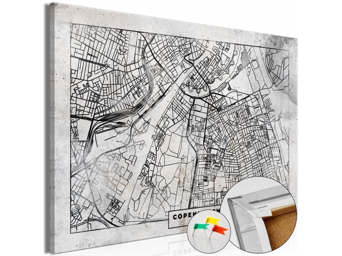 Le tableau en liège "Tableau en liège - Copenhagen Plan" est un produit destiné aux personnes recherchant des décorations murales originales. Le matériau écologique et son motif intéressant font en sorte qu’un simple tableau en liège devient un accessoire de style, que vous pouvez utiliser de différentes manières. Vous pouvez y planter des punaises, indiquer les endroits visités sur une carte ou encore y placer des notes. Le tableau en liège "Tableau en liège - Copenhagen Plan" est plus léger que les décorations murales traditionnelles. Grâce à cela les tableaux décoratifs en liège peuvent être suspendus sur tous les endroits souhaités dans votre logement ou bureau. La toile imprimée est placée sur la plaque en liège, grâce à quoi les couleurs d’impression sont bien définies et les détails — même les plus petits — sont restitués. Vous pouvez créer un motif personnalisé sur votre mur en y plantant des punaises ou notes!