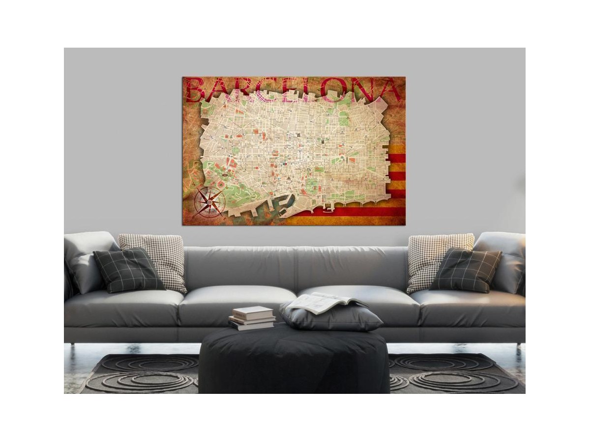 Le tableau en liège "Tableau en liège - Map of Barcelona" est un produit destiné aux personnes recherchant des décorations murales originales. Le matériau écologique et son motif intéressant font en sorte qu’un simple tableau en liège devient un accessoire de style, que vous pouvez utiliser de différentes manières. Vous pouvez y planter des punaises, indiquer les endroits visités sur une carte ou encore y placer des notes. Le tableau en liège "Tableau en liège - Map of Barcelona" est plus léger que les décorations murales traditionnelles. Grâce à cela les tableaux décoratifs en liège peuvent être suspendus sur tous les endroits souhaités dans votre logement ou bureau. La toile imprimée est placée sur la plaque en liège, grâce à quoi les couleurs d’impression sont bien définies et les détails — même les plus petits — sont restitués. Vous pouvez créer un motif personnalisé sur votre mur en y plantant des punaises ou notes!